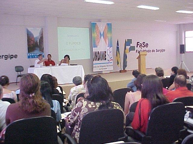 O Fundo de Manutenção e Desenvolvimento da Educação Básica (Fundeb) e a Educação Municipal. Este é o tema do seminário que acontece durante todo o dia de hoje no auditório da Faculdade de Sergipe (FASE), promovido pela União Nacional dos Dirigentes Municipais da Educação em Sergipe (Undime/SE). O evento conta com a participação da secretária municipal da Educação, Tereza Cristina Cerqueira da Graça, que durante esta manhã foi a debatedora da segunda mesa, com o tema Avanços e limites do fundo de manutenção da Educação Básica. Tereza Cristina também é conselheira representante da Undime/SE. O evento reuniu técnicos da Secretaria Municipal da Educação (Semed), secretários da Educação de outros municípios do Estado e professores interessados no tema. As principais discussões sobre o Fundeb, como a importância da implantação deste fundo, quais os benefícios, como foi concebido, quais as diferenças entre ele e o atual Fundo de Manutenção e Desenvolvimento do Ensino Fundamental (Fundef), foram explicadas nesta manhã pelo representante da Undime Nacional, João Antônio C. de Monlevade, sociólogo (Spring Hill College, Estados Unidos) e doutor em Educação pela Unicamp. De acordo com o presidente da Undime/SE, José Franco Filho, este é o primeiro encontro realizado no Estado para tratar sobre o tema. É um sistema muito melhor do que o Fundef, que já está com a morte anunciada para 2006, pois o Fundeb amplia a área de atuação, porque o Fundef só atendia crianças do ensino fundamental com idade entre sete e 14 anos. O novo fundo vai atingir crianças desde a educação infantil, comentou José Franco. O Fundef envia um valor anual per capta de aproximadamente R$ 600 por estudante. Já o Fundeb vai aumentar para quase R$ 800 o valor per capta por cada aluno matriculado. A única objeção que a Undime nacional está fazendo ao projeto do novo fundo, que já foi encaminhado ao Congresso para aprovação, é o fato dele não abranger as crianças atendidas pelas creches. A inclusão das crianças atendidas pelas creches na cobertura do Fundeb será a nossa luta, finalizou José Franco Filho, presidente da Undime/SE.