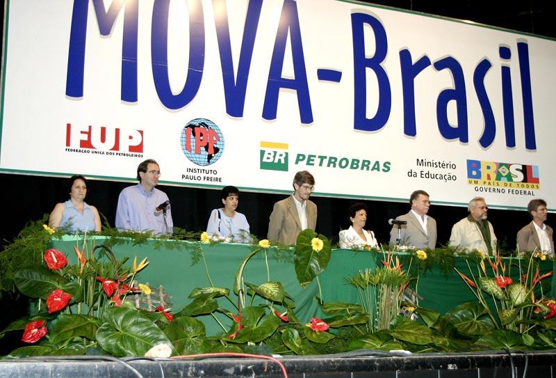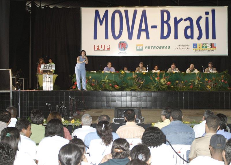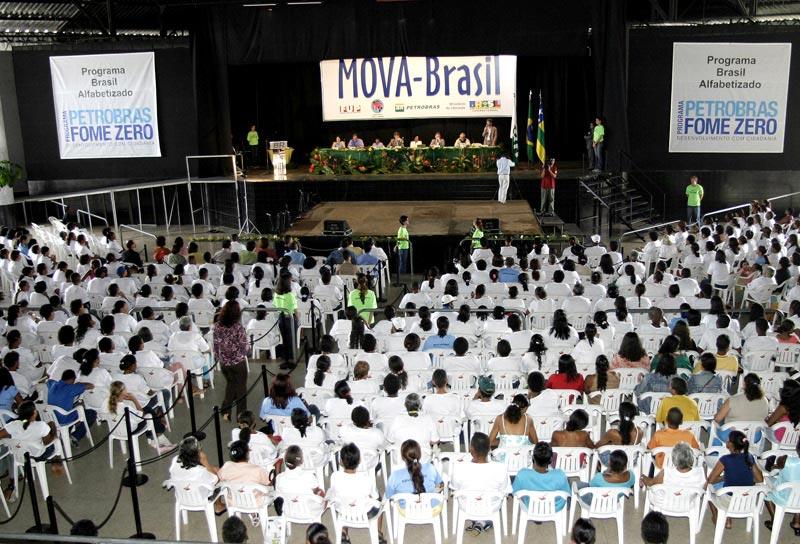 A secretária municipal da Educação em exercício, Tereza Hortência Azevedo, esteve na manhã deste domingo representando o prefeito de Aracaju, Marcelo Déda, na solenidade de formatura de alfabetização da primeira turma do projeto Mova Brasil Petrobras. O projeto é realizado em parceria com a Federação Única dos Petroleiros e o Instituto Paulo Freire, responsável por todo o projeto pedagógico utilizado na alfabetização dos jovens e adultos integrantes do projeto. A formatura dos 950 sergipanos dos municípios de Aracaju, Laranjeiras, Riachuelo, Santo Amaro das Brotas e Japaratuba aconteceu no Espaço Emes e contou com a presença de Tímote Ireland, diretor do Departamento de Educação de Jovens e Adultos do Ministério da Educação. Ele veio a Aracaju representando o ministro Fernando Haddad. Também estiveram presentes o gerente geral da Petrobras para os Estados de Sergipe e Alagoas, Eugênio Dezen; representantes da FUP, do Instituto Paulo Freire, Fafen, Comitê executivo do Programa Fome Zero, do qual o projeto é integrante, e do governo do Estado. A meta do projeto é alfabetizar de agosto de 2003 até julho de 2006, 40 mil adultos, envolvendo 1.600 alfabetizadores. Durante este mês também serão entregues os certificados dos alunos dos estados de São Paulo, Rio Grande do Norte, Bahia, Rio de Janeiro e Ceará. Mova-Brasil Petrobras O Movimento de Alfabetização de Jovens e Adultos (Mova) começou em 1989 pela prefeitura de São Paulo, tendo sido expandido para vários outros municípios brasileiros. O Mova-Brasil Petrobras foi iniciado em 2003 e utiliza como metodologia pedagógica elementos do cotidiano do aluno para despertar suas habilidades de leitura, escrita e conhecimento crítico da realidade. O grande momento do dia foi a entrega do certificado e de uma plaqueta homenageando o aposentado Marciano Santos, que com quase 90 anos decidiu voltar a estudar, pois ficou órfão muito cedo e para ajudar no sustento da casa da avó, com quem foi morar, teve que ir trabalhar na roça. Só depois desse tempo todo pude aprender o que tanto queria, declarou. A prefeitura de Aracaju parabeniza todos que fazem parte deste momento, especialmente os alfabetizandos, por terem insistido na realização de um sonho e por estarem desta forma, contribuindo para o surgimento de uma sociedade mais justa, mais digna, declarou a secretária da Educação de Aracaju em exercício. A Secretaria Municipal da Educação (Semed) também realiza um projeto de alfabetização de jovens e adultos, o Brasil Alfabetizado, desenvolvido desde 2004 em parceria com o governo Federal e Fundação Banco do Brasil. No ano passado foram formados 1.176 alunos com idade inicial de 15 anos. Este ano, a expectativa da Semed é alfabetizar 1.500 pessoas.