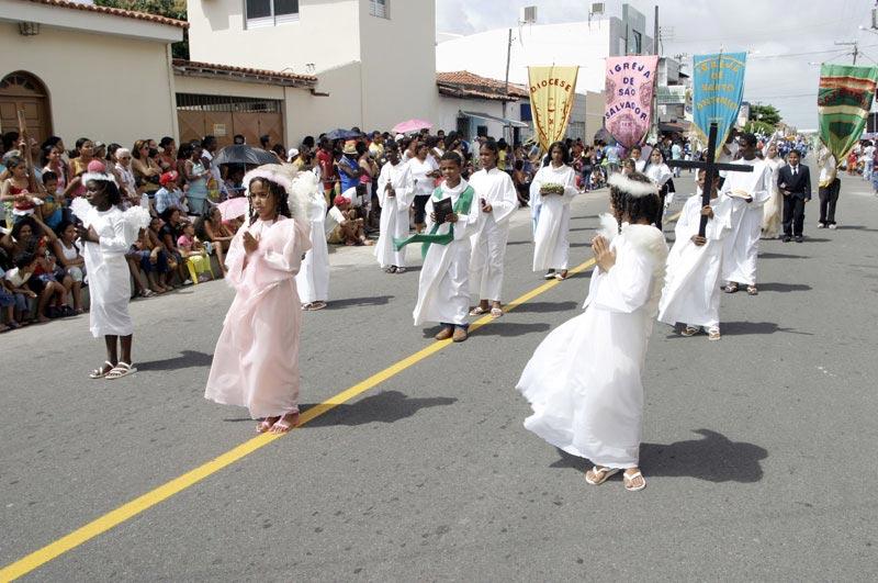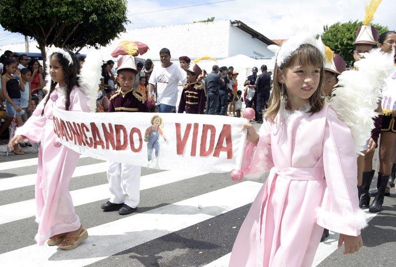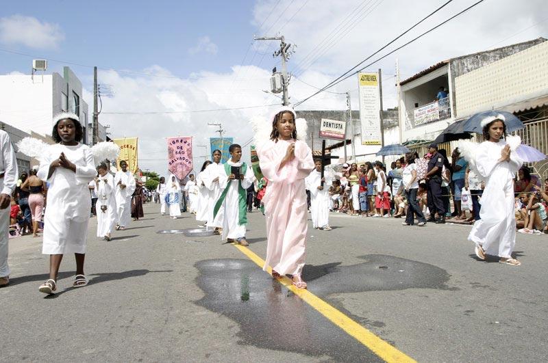 Sob a perspectiva de recompor parte da trajetória política, econômica e social da cidade, quase dois mil alunos das escolas da rede municipal compareceram ao bairro Siqueira Campos na manhã de ontem, 28, para participar do Desfile Cívico Estudantil 2005, promovido pela Prefeitura de Aracaju através da Secretaria Municipal da Educação (Semed). Ao público, foi proporcionada uma verdadeira aula de civismo ministrada através da temática Aracaju: 150 anos de História e seus 11 sub-temas, entre eles Aracaju e seus bairros, Aracaju, espaço de entretenimento e Aracaju, centro político do Estado. Em meio a diversos pelotões e bandas marciais, os trabalhadores do Povoado Santo Antônio de Aracaju, o Tabuleiro feito pelo engenheiro Basílio Pirro e algumas localidades como a Bodega do Pedro e o Cinema Plaza, foram algumas das representações mantidas pelos alunos das escolas municipais Tancredo Neves, José Antônio da Costa Melo, Wilson Rocha e Ágape, ao longo do desfile. Os engenhos de açúcar, as salinas e os sítios são algumas das riquezas que caracterizaram a trajetória da capital sergipana, antes designada de povoado Santo Antônio do Aracaju. Daí procuramos registrar a participação ativa dos pescadores e dos sitiantes que tanto contribuíram para o desenvolvimento econômico do nosso antigo território, adaptando aos estudantes a indumentária correspondente ao sub-tema Aracaju e seus bairros, explicou o coordenador pedagógico da unidade escolar, Wellington Amaral. Aracaju, centro político do Estado A população que se manteve atenta à cronologia do desfile cívico pôde conhecer o caráter dos movimentos revolucionários que abrangeram professores, funcionários públicos e outros segmentos sociais, relembrados pelos estudantes da Emef. Oviêdo Teixeira. Logo em seguida as Trincheiras da Praia Formosa e o Movimento Tenentista (1924) deram espaço para a apresentação dos alunos do Programa de Educação de Jovens e Adultos (Paeja) da Emef. Ministro Geraldo Barreto Sobral, que percorreram o trajeto levantando a bandeira da revolucionária Núbia Marques, uma das maiores líderes do Movimento Feminino pela Anistia. Os estudantes da Emef. Diomedes Santos Silva deram continuidade à ênfase política abordando o movimento das Diretas Já, tanto por meio de máscaras, quanto de caricaturas de alguns políticos, a exemplo do ex-governador de Sergipe, João de Seixas Dórea; do deputado federal Jackson Barreto e do senador Ulisses Guimarães. Foi transmitido aos alunos um amplo embasamento teórico sobre as questões políticas que marcaram Aracaju ao longo dos anos. O conteúdo agradou bastante e a satisfação de desfilar abordando um tema tão relevante às comemorações dos 150 anos foi plena, salientou a coordenadora administrativa da escola, Jenivalda Góes.
