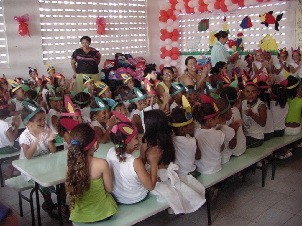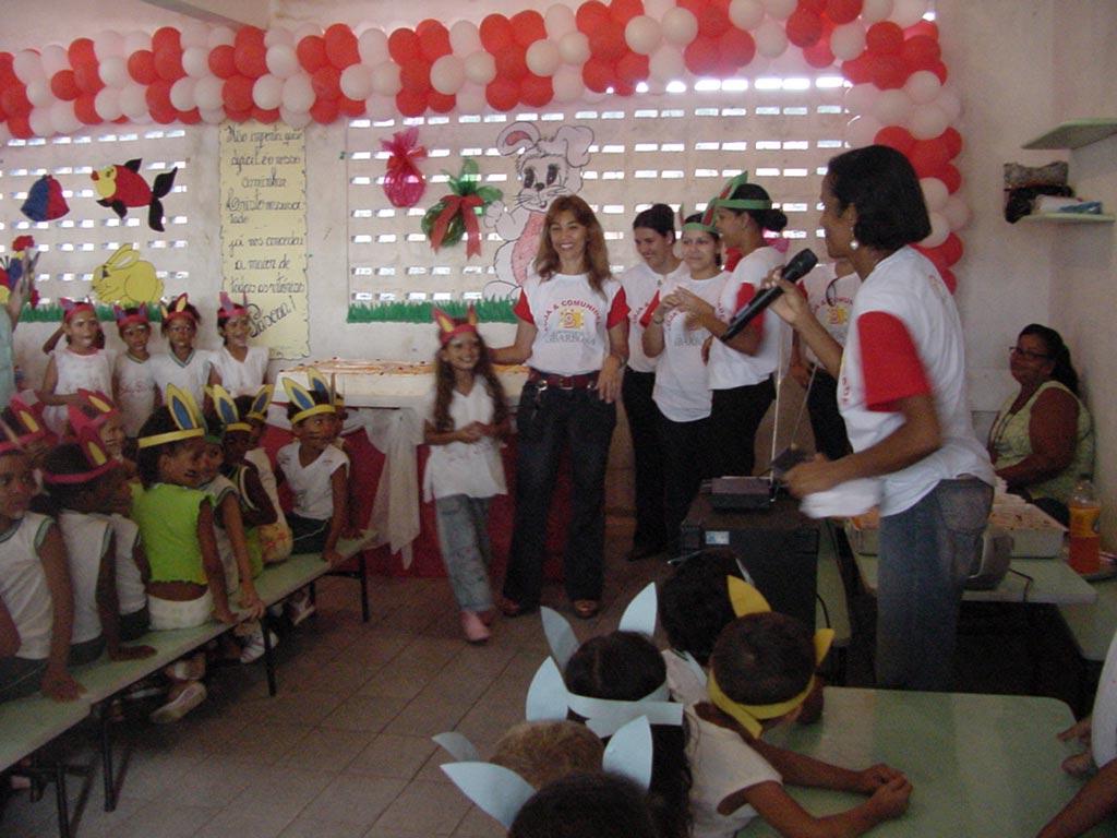 Várias escolas da rede municipal aproveitaram a última semana para juntos com seus alunos festejarem o renascimento de Jesus Cristo. A Páscoa foi representada aos alunos através de cartazes, leitura de textos e conversas em sala de aula sobre o tema, além é claro, de ovos de chocolate e coelhinhos. Uma das unidades a festejar a data foi a Escola Municipal de Educação Infantil Arthur Bispo do Rosário, localizada no conjunto Orlando Dantas. Cerca de 300 alunos da Arthur Bispo não somente aprenderam o significado deste ritual, como também foram presenteados com chocolate e kit´s escolares, presentes doados pela loja do G.Barbosa instalada na comunidade, que contou com o apoio da loja Hiper Sul em mais uma edição do projeto Integrando Escola e Comunidade. Cada loja da rede se torna responsável por uma instituição, seja de ensino ou filantrópica, que está inserida na comunidade. Claro que nosso objetivo final é ter uma maior interação, uma maior aproximação da comunidade, mas não esquecemos, no caso da Arthur Bispo, da importância que a educação possui neste contexto, acrescentou o gerente geral do projeto, Sérgio Alves de Aquino. A Escola vem trabalhando em regime de parceria com a loja há dois anos, antes mesmo de ser criado o instituto que leva o nome da rede de supermercados, e o projeto se tornar uma das vertentes da instituição. A coordenadora pedagógica da Emei, professora Josefa Valnira Rosenda Santos, destacou a importância do projeto, enquanto atividade alternativa para os alunos. Nossa preocupação maior não está no quantitativo de alunos e sim na freqüência deles à escola. Projetos como este estimula a criança não só no processo de aprendizagem, mas também, na possibilidade de sonhar e de ser um adulto mais feliz, mais sereno, pois teve na escola uma infância feliz e que lhe deu oportunidade em vivenciar todos os contos infantis, como o do coelhinho da Páscoa, já que por conta da difícil realidade não teriam isto em suas casas, afinal de contas, nossa clientela é residente no Bairro Santa Maria, declarou emocionada.