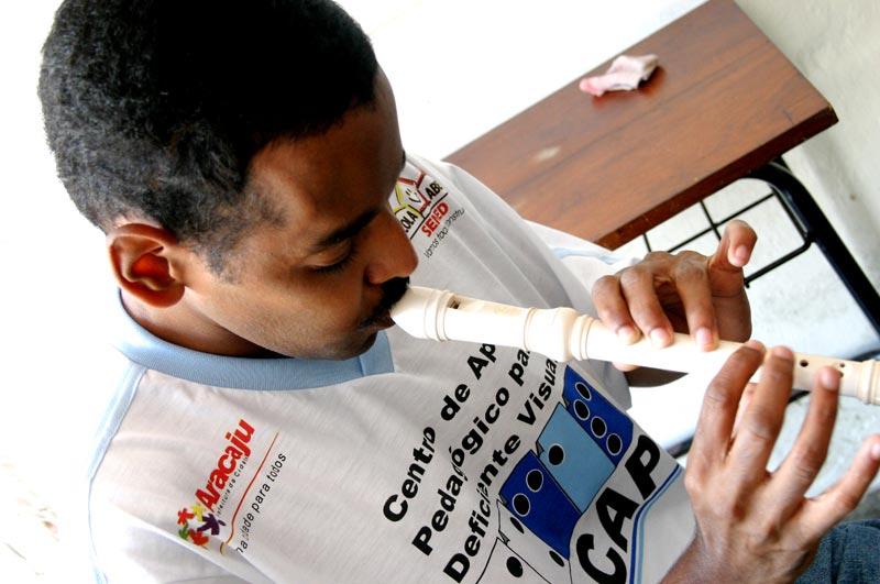 A Prefeitura de Aracaju, por meio da Secretaria Municipal de Educação (Semed), mantém em pleno funcionamento o Centro de Apoio Pedagógico para Atendimento às Pessoas com Deficiência Visual (CAP). Localizado na rua Vila Cristina, no bairro São José, o CAP tem o objetivo de garantir aos usuários cegos e de visão subnormal o acesso aos recursos específicos, necessários a seu atendimento educacional, priorizando o Ensino Fundamental da rede pública, atendendo também a educação infantil e o Ensino Médio. Até o dia 29 de março, foi registrado o cadastramento de 138 pessoas no Centro, sendo 40% cegas e 60% de baixa visão. O CAP oferece apoio aos alunos do ensino regular através da confecção de material didático e alfabetização (leitura e escrita) no sistema Braille, ensina Matemática através do instrumento Sorobã (apropriado para os deficientes visuais fazerem operações matemáticas). Além disso, garante também apoio pedagógico para os alunos inclusos no ensino regular. Há sete anos em funcionamento, o CAP possui 23 funcionários, sendo 13 professores e o restante estagiários e pessoas do setor administrativo. Os cursos acontecem nos horários das 7h30 às 11h30 e das 13h30 às 17h30. Primeiramente, é feito o cadastro na instituição; depois, o portador de deficiência visual passa por uma avaliação pedagógica, quando são observados o laudo médico e o histórico de vida, para verificar em qual setor será encaixado. Logo depois é iniciado o processo de alfabetização. Aberto a pessoas de 0 a 80 anos, o CAP atende prioritariamente a cegos. A sala de Orientação e Mobilidade é muito importante, porque possibilita o ensino de técnicas de uso da bengala-guia, para que os cegos possam ser mais independentes. Assim, diminui até o risco de acidentes. A coordenadora do CAP, Margarida Maria Teles, informa que qualquer deficiente visual pode procurar o Centro. Assim que surgem vagas, são imediatamente chamados, explicou. De acordo com Margarida Teles, dentro das atividades, existe o projeto Oficina Arte Viva, que visa melhorar a qualidade de vida dos cegos da terceira idade, resgatando a auto-estima e a produtividade através de um trabalho de integração social com a produção de artesanato, incluindo a vida deles no dia-a-dia da sociedade. Além disso, são ministradas aulas de Educação Física, dedicadas especialmente para os 40 idosos cadastrados. Também existem aulas de Iniciação à Música (teclado, violão e flauta) como forma de profissionalização, integração social, até mesmo por meio do grupo Canto e Encanto, criado pelos beneficiados do Centro. As aulas de Educação Física se dividem em grupos de natação na Academia Carlos Smith e aulas de aeróbica, dança e alongamento no próprio Centro, classificados de acordo com a faixa etária. Além disso, mais duas salas compõem o Centro: sala de arte e o núcleo de informática, disse Margarida Teles. A sala de Estimulação Precoce reúne crianças de zero a seis anos com cegueira ou baixa visão. As aulas são realizadas individualmente ou em dupla, seguindo a linha psicomotora, para dar estimulação de espaço e percepção táctil. Segundo a professora Maria Irma Rezende, uma outra sala chamada Estimulação Visual é destinada à pessoas com visão reduzida. Desta forma, as letras são dispostas no papel de forma ampliada, com muito contraste (preto e branco), trabalhando as cores e com objetos, dependendo do tipo de visão periférica do beneficiado pelo CAP. São alunos que precisam de muita atenção por parte do professor, disse Maria. Para o aposentado da Polícia Militar, Pedro José dos Santos, que está entrando hoje, dia 2, no curso de artesanato do CAP, essa oportunidade está sendo uma boa distração na sua vida. Queria preencher meu tempo vago, me ocupar. Agora estou descobrindo que sou útil, já que sempre fui uma pessoa ativa, que pratica esportes, disse. Já o estudante Robynson de Santana Guidice, está no CAP há três anos, onde participou do sistema Sorobã. Estou recebendo apoio pedagógico porque estou na rede regular de ensino. Aqui, o deficiente recebe apoio e melhora a auto-estima. As atividades aqui são fundamentais, porque o convívio trabalha a questão emocional e uma integração social, afirmou.