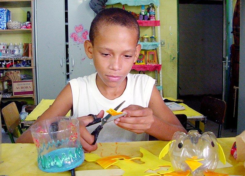 Um momento especial para a prática da arte na escola. Assim pode ser definido o projeto Laboratório de Artes do Município (Laborart), desenvolvido desde 2003 na Escola Municipal de Ensino Fundamental (EMEF) Costa Melo, no bairro Getúlio Vargas com o apoio da Secretaria Municipal da Educação (Semed). Destinado a todos os alunos da rede municipal de ensino no horário oposto a aula, conta atualmente com 137 integrantes em oito oficinas temáticas, que estimulam o exercício da teoria vista em sala de aula. Desde o trabalho com material reaproveitado na oficina ´Metamorfose´, a modelagem em argila, passando por capoeira, pintura em tela, teatro de bonecos e teatro popular, meninos e meninas têm a oportunidade de desenvolver a sensibilidade artística, além de descobrir suas habilidade e talentos. Cada turma possui de 15 a 30 alunos, sendo que cada integrante pode escolher até duas modalidades diferentes. A oficina de dança é a campeã na procura, com 44 alunos matriculados e várias turmas disponíveis, inclusive a ´baby class´ para os alunos da creche. Segundo a coordenadora e professora de Artes Visuais, Helenízia Cardoso Matos, na sala de aula os alunos geralmente estudam a história da arte, no projeto é diferente. Aqui eles têm tempo e espaço para pensar e botar em prática as suas idéias. A nossa missão é criar e para participar tem que haver grande interesse do aluno, porque eu não reprovo ninguém, por isso mesmo eles são muito interessados, contou, lembrando que todas as turmas são preenchidas. O pequeno Lucas dos Santos, 13, junto com seu irmão Emerson, 12, são dois dos alunos das oficinas ´Metamorfose´ e ´Modelagem´. Há quase um ano, eles saem do Marcos Freire III, em Nossa Senhora do Socorro, duas vezes por semana para praticar arte. Eu tive vontade de fazer e minha mãe me incentivou aí eu vim. Eu gosto de participar, mas a que gosto mais é de modelagem, contou o mais velhos dos irmãos, que são alunos da EMEF Sabino Ribeiro. Uma vez por semestre todo o material produzido no Laborart é mostrado à comunidade em uma exposição coletiva. Eles fazem apresentações duas vezes ao ano durante os encerramentos das aulas, onde a família pode prestigiar o trabalho realizado, contou a coordenadora. O projeto conta com uma equipe pedagógica formada por quatro professores de Artes Visuais, dois estagiários na área, um mestre de capoeira e um ator e a coordenação é exercida por uma comissão com três educadores. O Laborart foi concebido a partir de uma releitura do antigo Projeto de Arte, Cultura e Cidadania (PACC), que era realizado no Parque da Sementeira, para promover oficinas de artes de forma independente a disciplina curricular ou do curso implementado na escola pela obrigatoriedade da lei.