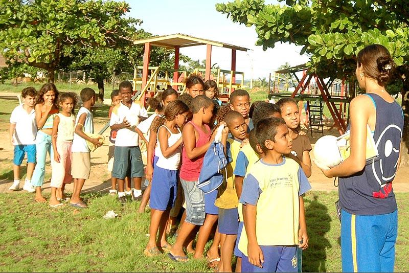 A Prefeitura de Aracaju, por meio da Secretaria Municipal da Educação (Semed), em parceria com a Associação Atlética do Banco do Brasil, continua realizando o Projeto AABB Comunidade nas escolas da rede municipal. Patrocinado pela Fundação Banco do Brasil, o programa tem como objetivo promover atividades sócio-educativas que complementem o trabalho desenvolvido na escola. O trabalho é dividido entre as duas parceiras. A Prefeitura disponibiliza os professores, coordenadores, lanche e transporte dos alunos, enquanto a AABB disponibiliza as instalações e o material pedagógico. O objetivo do Projeto é possibilitar a integração social dessas 300 crianças do Mosqueiro e Robalo na comunidade. De acordo com a coordenadora pedagógica, Eliane Dias Guimarães, o propósito é diminuir a evasão escolar. Acompanhamos os alunos na escola, através de relatórios mensais, que fiscalizam a freqüência dos alunos e seu desempenho na escola. Além disso, fazemos relatórios administrativos para analisar os materiais necessários para o empenho das atividades, afirma a coordenadora. Ela informa ainda que o trabalho é de extrema importância junto aos meninos e meninas atendidos, cuja faixa etária varia entre 7 e 12 anos. O projeto está voltando às atividades e os alunos estão satisfeitos. Isso é perceptível no rosto deles e na empolgação que ficam quando o transporte chega para buscá-los, comenta. O trabalho é desenvolvido através de oficinas educativas de artes, dança, teatro e esportes. Com a chegada da Copa do Mundo, os alunos irão discutir sobre os aspectos que compõem a festa do ´país do futebol´, além de temas como violência nos estádios, a beleza do espetáculo, dentre outros. Para o pequeno Mateus de Jesus, 8, a brincadeira é motivo de alegria e o esporte é o grande incentivo. Gosto muito de vir brincar com meus amigos. Além de brincar ainda jogo futebol, que é uma das coisas que mais gosto de fazer. Maria Luana Santos, 9, diz que as oficinas de arte são muito interessantes e que a dança é uma de suas atividades favoritas. Lembrando que todos os alunos passam por todas as oficinas, cada série em um determinado período. O Programa AABB Comunidade acontece desde 1988, e tem mobilizado comunidades brasileiras e parcerias para garantir melhores recursos educativos a estudantes da rede pública de ensino, envolvendo agências do Banco do Brasil, prefeituras e conselhos tutelares, além de outras instituições públicas e privadas. Para isso, utiliza o espaço das Associações Atléticas Banco do Brasil, promovendo ações que são realizadas de forma lúdica para estimular o aprendizado das crianças e adolescentes envolvidos.