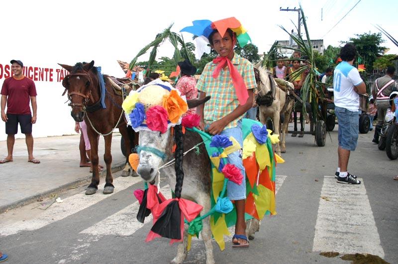 Os santos juninos foram bastante comemorados nas escolas da rede pública municipal de educação. Em praticamente todas as unidades de ensino houve festa para marcar o período, eventos que não trabalharam apenas o lúdico, mas principalmente o pedagógico, como afirmou o coordenador geral da Escola Municipal de Ensino Fundamental Professora Maria Thétis Nunes, o professor Mauro César Santos. Passamos praticamente o mês inteiro desenvolvendo, em sala de aula, atividades que fossem ligadas ao tema. Cada turma estudou um aspecto do festejo, disse. Na programação estavam balaios, gincanas, apresentações de quadrilhas e até mesmo passeio de carroças para a criançada da pré-escola da EMEF Dom José Vicente Távora, brincadeira que já virou tradição no bairro, fazendo a alegria da garotada e das mamães, que acompanharam os filhos em todo o trajeto. Este ano, 21 carroças percorreram não somente as principais ruas do bairro onde a escola está inserida, o Manoel Preto, como também algumas ruas e avenidas do centro comercial da capital, a exemplo da Ivo do Prado e Itabaiana. Outra atração do passeio deste ano foi a presença de Catarina, uma mulinha bem pacata, que foi ornamentada a caráter e como não podia deixar de ser, mesclou em sua fantasia a comemoração a São João e a torcida pela seleção brasileira de futebol, na Alemanha. Todos os eventos tiveram o apoio da Secretaria Municipal da Educação, e dentre as ações que auxiliaram a realização das festanças estavam a adaptação do cardápio da merenda escolar, que sem perder a qualidade nutricional, serviu para as crianças da rede municipal de ensino, comidas típicas do período junino.