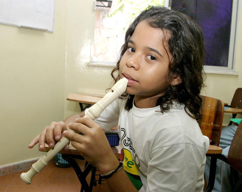 Após um período de recesso devido às férias escolares, foram reiniciadas hoje pela manhã as aulas do Projeto Dó-ré-mi, desenvolvido pela Fundação Municipal de Cultura, Turismo e Esportes (Funcaju) desde abril e que tem como objetivo principal disseminar noções de arte entre os estudantes das escolas municipais Anísio Teixeira e Presidente Vargas. Até dezembro, os alunos freqüentarão duas vezes por semana a Escola Oficina de Artes Valdice Teles, localizada na avenida Ivo do Prado, onde terão aulas do curso escolhido nas áreas cultural ou artística disponibilizadas. De acordo com a diretora da Escola de Artes, Maria Carneiro, são oferecidos hoje pela instituição nove cursos: percussão, acordeom, teclado, violão, cavaquinho, violino, flauta-doce, dança e pintura. Ao todo, são 127 alunos advindos das duas escolas municipais freqüentando as aulas ministradas pela equipe de professores que tem em seu quadro músicos de renome como o percussionista Ton Toy e o guitarrista Bob Zé. É um projeto de inclusão social que já apresenta bons resultados. Os garotos que demonstravam já nas suas escolas alguma vocação para a música ou dança estão tendo aulas teóricas e práticas que estão ajudando a lapidá-los. Nosso grupo de percussão, por exemplo, já se apresentou na Universidade Federal de Sergipe e no Colégio Atlântico. E isso é só o começo, informa. Maria Carneiro lembra também que o sucesso do Projeto Dó-ré-mi deve-se ainda ao apoio oferecido pela Secretaria Municipal de Educação (Semed), que fornece transporte para os alunos dirigirem-se até a Escola Valdice Teles e ainda um lanche para que os estudantes não possam encontrar motivos para desistir das aulas. A coordenadora da divisão de artes cênicas, Dinha Barreto, ressalta que a idéia de levar os alunos a uma escola estruturada especificamente para oferecer aulas nas áreas culturais e artísticas, ao invés de levar professores de música ou dança às escolas tradicionais, facilita o aprendizado. É uma proposta pedagógica diferenciada e que vem sendo bem aceita. Aqui, por exemplo, unimos em uma só sala alunos vindos das escolas municipais e demais estudantes da comunidade, possibilitando uma maior socialização destas crianças com a própria sociedade. Aqui, o objetivo não é apenas formar no futuro um músico ou um dançarino, mas um cidadão, explica, informando ainda que no curso de dança são trabalhados dois estilos, o baby-jazz e o contemporâneo. Satisfação garantida Nas salas de aula, o entusiasmo é geral. No curso de flauta-doce ministrado pela professora Maria das Graças, a Gal, a turminha mostra interesse por cada nota musical desenhada no quadro na aula teórica. Orgulhosa de seus alunos, Gal enfatiza a evolução demonstrada por todos desde abril e já planeja uma apresentação para o final do curso este ano, em dezembro. Eles se mostram bastantes curiosos com o mundo da música. Querem descobrir tudo muito rápido, o que é natural, explica. Everlan Messias Marques é um dos seus alunos. Com apenas 12 anos, o estudante da 5ª série da Escola Anísio Teixeira não larga a flauta nem na aula teórica e já diz sonhar em se tornar um músico no futuro. Eu já praticava na escola onde estudo. Mas aqui estou aprendendo outras coisas. Escolhi a flauta porque achei no início seu nome engraçado, revela Everlan, que não tem nenhum familiar músico, mas que já se orgulha de ter tocado em um restaurante da Orla onde a mãe trabalha. A mesma determinação pode ser encontrada na estudante de percussão Raquel Marília, de 18 anos. A estudante da 6ª série da Escola Anísio Teixeira diz que chegou à Escola de Artes tocando um pouco de pagode, mas que hoje se mostra apaixonada pela música sergipana e pelo samba. Isso aqui é uma maravilha. Nosso professor, o Ton Toy, ensina muito bem e vem ajudando a turma a aprender cada vez mais. Já tocamos na Universidade Federal de Sergipe e no Colégio Atlântico. Agora esperamos fazer uma viagem a Salvador para conhecer de perto os músicos de lá e fazer algumas apresentações, planeja. Colega de bairro, de escola e de curso de Raquel, Elisângela Evangelista, também de 18 anos e estudante da 7ª série, parece já ter encontrado a profissão que deseja abraçar por toda a vida. Ela é um dos destaques da turma de percussão e também já dá passos largos no aprendizado de outros instrumentos, como o violão. Com certeza quero ser música. Antes de vir para cá, eu já tocava em uma banda de pagode do Augusto Franco, onde moro. Aqui, estou aprendendo a técnica e outros estilos musicais, o que está sendo ótimo, disse. O interesse nas aulas é também encontrado na sala de aula de dança. O professor Adriano Matos, ex-aluno da própria Escola Oficina de Artes Valdice Teles, diz que o Projeto Dó-ré-mi possibilita aos alunos de seu curso terem um contato diferenciado com a arte, já que as aulas não se limitam a ensaios de coreografias. Aqui, eles têm contato com a história da dança, educação física e com anatomia, por exemplo, já que para dançar eles aprendem que não basta decorar um passo. É preciso entender como a técnica é desenvolvida e como utilizar seu corpo. O nome Escola de Artes não é só de fachada. Aqui, os alunos vindos das escolas municipais vão entender a dança e não apenas executar movimentos mecânicos. Quero que daqui possam sair amanhã não apenas dançarinos, mas também coreógrafos ou mesmo professores, explica. A aluna Raiane Santos, de 14 anos, estudante da 7ª série da Escola Anísio Teixeira, faz questão de suar literalmente a camisa. Raiane é um dos destaques em sua turma e não vê a hora de voltar a se apresentar para o público, o que já ocorreu no Espaço Emes. Amo dançar e tenho a intenção de ser dançarina profissional. Eu já dava alguns passos na minha escola, mas aqui estou aprendendo novos movimentos, coreografias e muita coisa sobre a história da dança. Acho ót