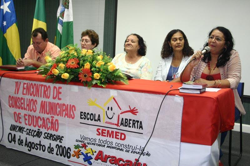 Acontece até o final da tarde de hoje, no auditório do Instituto Luciano Barreto Júnior, o IV Encontro Estadual dos Conselhos Municipais de Educação, realizado pela União nacional dos Conselhos Municipais – secção Sergipe e organizado pelo conselho de Aracaju. A Secretaria Municipal de Educação (Semed) está dando todo o apoio necessário para o desenvolvimento do encontro, que conta com a participação de mais de 100 pessoas de todos os cantos do Estado. A diretora de Ensino da Semed, professora Rosângela Cruz, fez parte da solenidade de abertura, representando a secretária Tereza Cristina Cerqueira da Graça. O objetivo deste encontro é discutir a gestão participativa e a importância dos conselhos, destacando o papel do conselheiro e sua representação, que tem dentre as suas funções, a de mobilizar a sociedade civil, que pode ser constituída de espaço de defesa dos interesses e coletivos de uma escola de qualidade, que requer uma visão do todo, consensuando os diferentes pontos de vista dos segmentos que os constituem. Estão fazendo parte das discussões a mestre em Educação pela Universidade Federal de Pernambuco e coordenadora da União Nacional dos Conselhos Municipais e Educação (UNCME) do estado de Pernambuco, Maria Iêda Nogueira, e a professora e vice-presidente do Conselho de Aracaju, Maria Virgínia de Azevedo Vital. “A UNCME acredita que o fortalecimento dos municípios favorecerá a expansão e a melhoria da qualidade da educação básica, além da valorização do magistério, destacando a educação infantil, que é prioridade para municípios”, disse a professora Maria Virgínia. “O conselho tem fundamento no princípio de gestão democrática do ensino público, constituindo-se em instrumento de pedagogia política para o aprendizado na participação democrática”, salientou Maria Ieda.