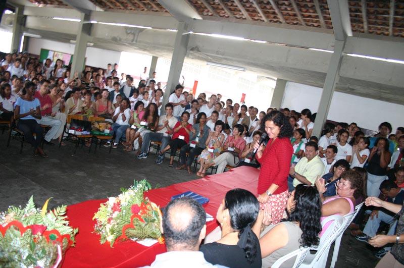 O nível educacional dessa escola é motivo de satisfação para todos em Aracaju, em Sergipe e no país. Essas foram apenas algumas palavras do discurso da secretária municipal da Educação, professora Tereza Cristina Cerqueira da Graça, durante a homenagem feita pela Secretaria aos integrantes da Escola Municipal de Ensino Fundamental Olga Benário, localizada no bairro Santos Dumont, pelo ótimo desempenho no Prova Brasil/MEC. Todos os coordenadores e professores foram homenageados diante dos alunos da escola. O Prova Brasil é um programa realizado pelo Ministério da Educação (MEC), que avalia estudantes da 1ª a 4ª séries ou da 5ª a 8ª séries de todo o país, e envolvem questões de interpretação de texto e matemática. Cerca de 3,3 milhões de alunos fizeram a prova, sendo que a escola Olga Benário obteve excelentes resultados. Com relação a 8ª série, em língua portuguesa, tivemos média 239,28, maior que a do Estado e do país, que foi de 222,63. O mesmo aconteceu em matemática, ao alcançar a média 267,53, enquanto a nacional foi de 237,46, disse orgulhosa a coordenadora geral, Joana DArc Meireles dos Santos. A EMEF. Olga Benário foi uma das mais de 40 mil escolas, em 5.398 municípios brasileiros, que participaram da avaliação. De acordo com a secretária da Educação, Tereza Cristina Cerqueira, este é o resultado de um trabalho continuado e de qualidade. O aluno já vem desde a 1ª série sendo acompanhado por uma das melhores equipes de professores existente. Ao chegar a 8ª série, ele já está com um ótimo nível de conhecimento, pois foram embasados por bons conteúdos. Sem contar que a participação de todo coletivo escolar, ou seja, do coordenador à merendeira, contribuem para esta conquista, ressaltou Tereza Cristina. Essa homenagem nos deixa muito emocionados, principalmente quando podemos contar com a participação e dedicação dos alunos, o que resulta também em nossos esforços para a educação de qualidade, informou um dos professores homenageados, Odiler Santos. A maior alegria é olhar para o aluno e ver nele o reflexo de todo o aprendizado obtido em sala de aula, acrescentou a professora polivalente, Gilvani de Jesus Moura.