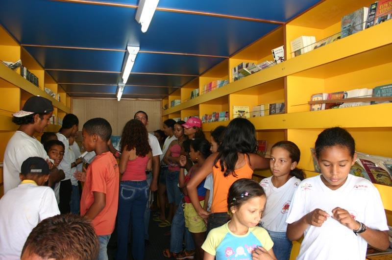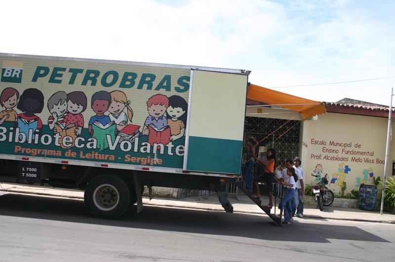 O Caminhão de Leitura da Petrobras-Sergipe esteve durante a manhã de hoje na Escola Municipal de Ensino Fundamental Professor Alcebíades Melo Vilas Boas, localizada no Bairro Industrial. A visita teve como objetivo principal levar entretenimento e incentivar o hábito da leitura em alunos, professores e comunidade escolar, através do programa Leia Brasil. A última visita do caminhão à escola aconteceu no dia 20 de julho de 2006, quando foi emprestado aos estudantes cerca de 100 livros, que deveriam ser lidos no período de férias. Os alunos tiveram um mês para ler todo material oferecido e hoje terão oportunidade de mostrar para toda a escola o que aprenderam com a leitura dos livros, disse o atendente e bibliotecário do programa, professor Edjan Cruz. Dentre os diversos materiais para-didáticos e infanto-juvenis deixados na unidades escolar, alguns dos exemplares mais procurados foram Branca de Neve; Presentes de Bruxa; A Árvore e a Aranha; A Bela e a Fera; Para Gostar de Ler; História de Tia Nastácia e Inteligência dos Animais. Os alunos expuseram suas idéias e tudo o que foi aprendido através de apresentações de teatro e música. Como os estudantes da 1ª série não sabem ler tão bem ainda, interpretaram a música Caderno através de desenhos e a cantaram como um mini-coral. Já os alunos mais experientes apresentaram um teatro de Fantoches intitulado Os músicos de Bremen, explicou a professora da EMEF., Marcia Guimarães. Adorei as apresentações dos meus coleguinhas. Todos estiveram muito bem e nos mostrou de uma forma divertida o que leram, disseram as alunas da 3ª e 4ª séries, Viviane Santos e Jéssica Camila.