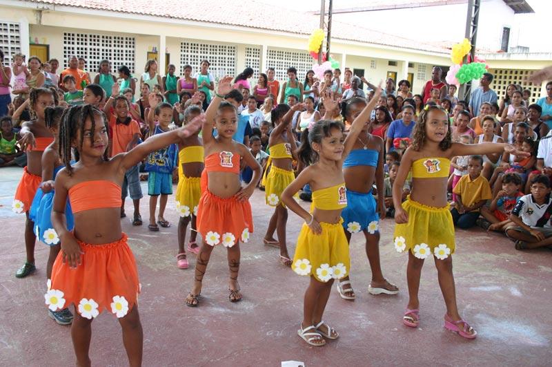 Toda criança tem o direito de ser feliz. Esse foi o tema escolhido pela Escola Municipal de Educação Infantil Arthur Bispo do Rosário, localizada no bairro São Conrado, para festejar durante todo o sábado, 7, o Dia das Crianças. Desde o início da semana que a escola vem comemorando a data. A festança do sábado contou com o apoio da loja G.Barbosa do bairro, dentro das atividades do projeto Integrando Loja & Comunidade. A diretora de Ensino da Secretaria Municipal da Educação (Semed), professora Rosângela Cruz e a coordenadora de Educação Infantil da Semed, Isis Mota, foram prestigiar o evento. Com a participação dos professores, os alunos de quatro a seis anos apresentaram no período da manhã a Dança dos desengonçados, mostrando todo o molejo corporal da garotada. Já no período da tarde, as crianças de quatro anos viraram protagonistas de um circo infantil, transformando-se, por exemplo, em bailarinos, domadores de animais e palhaços que faziam piruetas. Várias músicas infantis foram cantadas pelos alunos de seis anos, que encerraram a festa com o coral dó-ré-mi, com a canção Vamos construir, da dupla Sandy e Júnior. Para completar a alegria, foi servido bolo, refrigerante, sanduíches e pipoca, além dos brindes que foram distribuídos entre os alunos, brinquedos doados pelo supermercado. Teatro de bonecos, oficinas de arte, pintura e colagem, além da confecção de brinquedos com sucatas foras as atividades desenvolvidas pelos estudantes durante todo a semana. Certamente esta comemoração vai ser lembrada pela criançada por muitos anos, disse a coordenadora pedagógica da EMEI., a professora Josefa Valnira.