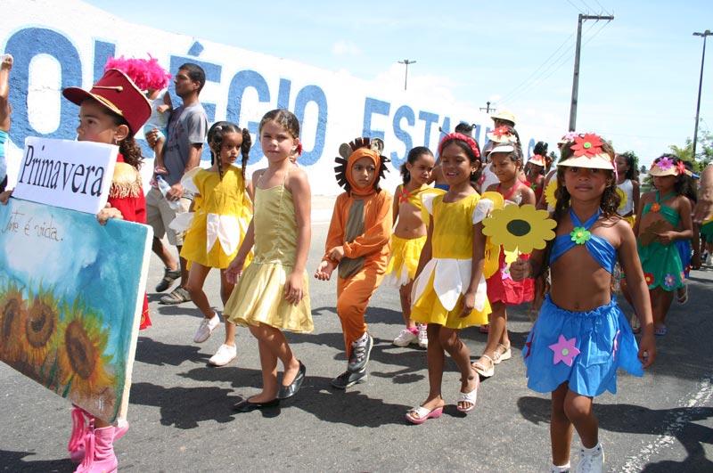 As crianças da Escola Municipal de Educação Infantil Nunes Mendonça, localizada no bairro Coroa do Meio, participam durante todo o dia de hoje das comemorações pelo Dia da Criança, festejos iniciados no dia 9 de outubro. Ao longo da semana realizamos várias atividades, como oficinas de arte, pintura, escultura em argila, colagem e brincadeiras infantis. As crianças apresentarem o baile da primavera, onde cada aluno representou a natureza, ou seja, se vestiram de pássaros e flores. Tudo isso foi feito para incentivá-los a preservar a natureza, disse a coordenadora geral da Nunes Mendonça, Marília de Oliveira. Na última quarta-feira, véspera do Dia das Crianças, os pequenos apresentaram uma peça musical. Gostei muito do resultado da peça. Fizemos tudo o que aprendemos nos ensaios. A minha professora foi muito legal porque teve paciência e trabalhou com muito amor, informou o estudante da pré-escola, Juliel Souza Silva. É muito gratificante trabalhar com essas crianças, pois o mesmo carinho que damos é retribuído a cada momento. Mostramos durante a semana da criança que o verdadeiro sentido da vida está num simples gesto ou num aprendizado que satisfaça a vontade de todos os alunos, disse a professora Hosfelita dos Santos. Quem também realizou um grande ato para marcar a data foi a Escola Municipal de Ensino Fundamental Anísio Teixeira, localizada no bairro Atalaia, que na última quarta, reuniu cerca de 350 alunos para um desfile. Os estudantes percorreram as principais ruas da comunidade. Este é o terceiro ano que a escola realiza este desfile, que teve à frente a sua banda marcial, que ditou a cadência dos pelotões que falavam sobre as várias modalidades esportivas, a exemplo do Ciclismo, Skate, Judô, Karatê e Ginástica Rítmica. Aproveitamos o tema do desfile cívico da rede municipal deste ano, que falava sobre o surgimento e o desenvolvimento do esporte, e deu certo. Os alunos souberam representar bem todas as categorias. Tivemos também a aprovação de todos os que compõem a comunidade escolar. Os pais acompanharam de perto, com orgulho e satisfação o desfile dos filhos, disse a coordenadora geral da escola, a professora Josenaide Magalhães da Silva Araújo. Para Márcia Brito, moradora da comunidade que assiste pela primeira vez o desfile, tudo foi encantador. Adorei ver a garotada feliz e satisfeita, comentou. Todo ano participo do desfile e não perco por nada, principalmente porque é muito organizado, ressaltou a aluna da 3ª série da EMEF. Anísio Teixeira, Joice Rodrigues.