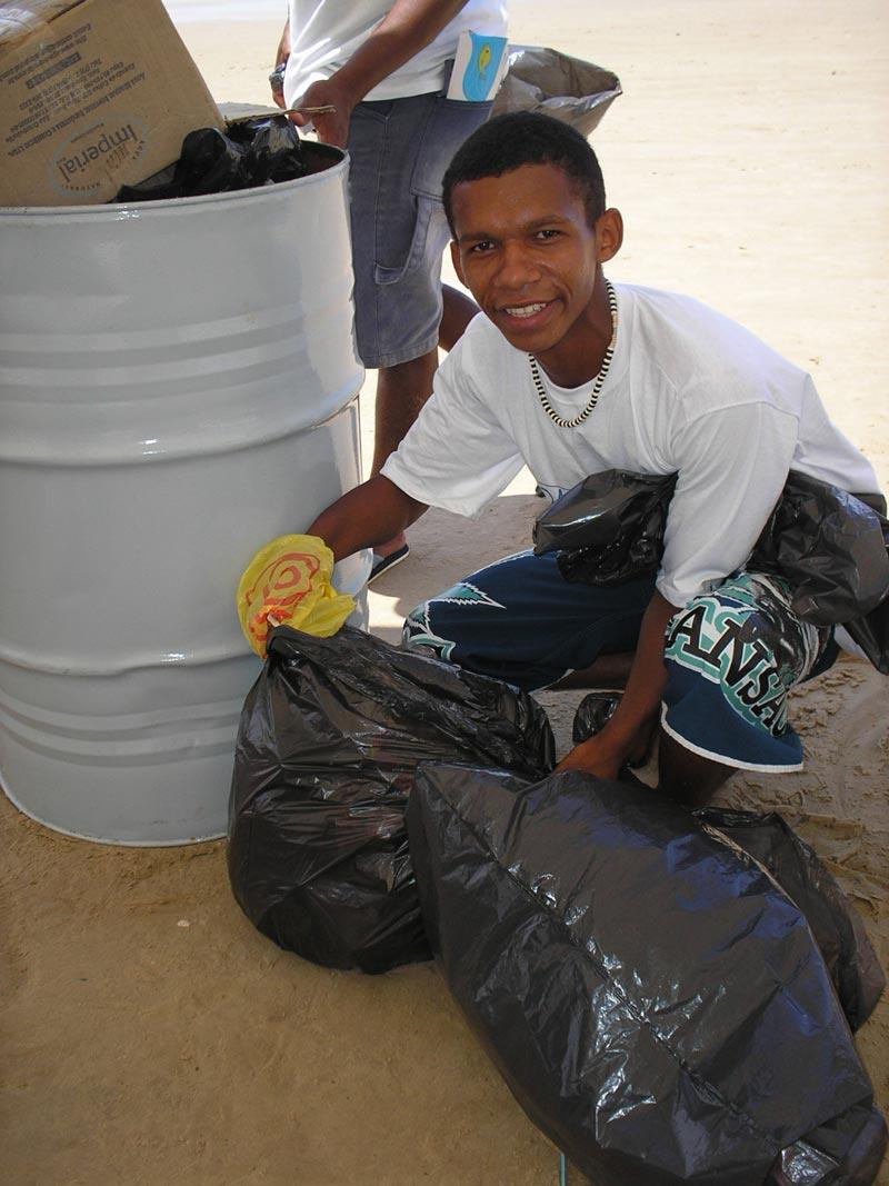 Cerca de 30 alunos de Educação de Jovens e Adultos da Escola Municipal de Ensino Fundamental Juscelino Kubitschek, localizado no bairro Coroa do Meio, participaram durante toda a manhã de ontem do Dia Mundial pela Limpeza dos Rios das Águas. Eles percorreram trechos da praia José Sarney, catando lixo e conscientizando a população sobre a importância de não sujar, mas sim, preservar o meio ambiente, dentro do tema do dia que foi Praias e rios vamos limpar e aprender a não sujar. Esta foi uma ação organizada pela Frente em Defesa das Águas de Sergipe, que conta com a parceria da Secretaria Municipal da Educação (Semed). Além dos alunos e professores, a coordenadora de projetos sócio-educativos da Semed, professora Fátima Maynard, a coordenadora da equipe de formadores do Projovem, Isabel Ladeira, e a secretária municipal da Educação, professora Tereza Cristina Cerqueira da Graça, participaram do ato, por saberem o quanto é necessário o desenvolvimento ou despertar da população para as questões ligadas ao meio ambiente. Sabemos o quanto a educação ambiental é importante para ajudar na transformação do jeito de pensar e de agir do indivíduo. Por isso a Semed investe neste tipo de educação, comentou Fátima Maynard. Para Adenilson Santos, 19 anos, aluno da Educação de Jovens e Adultos da EMEF. J.K., ajudar na limpeza das praias é algo muito agradável. Moro por aqui e sei o quanto é fundamental ter sempre a praia limpa. Gosto disso, tanto que estou no trabalho desde cedo, disse. De acordo com Stelamaris Torres Melo, professora da EJA, o dia de limpeza foi considerado como mais uma atividade da escola em prol do bem-estar da humanidade, pois a EMEF. já desenvolve um projeto de intervenção na comunidade do Coroa do Meio, também sobre o tema preservação.