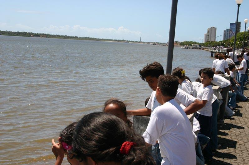 Hoje, dia 3, é o aniversário do Rio Sergipe e para não deixar que uma data tão importante fosse esquecida, alunos de cinco escolas da rede municipal de ensino participaram do abraço ao Rio Sergipe, realizado na última quarta-feira, na avenida Ivo do Prado, no trecho que compreende a Ponte do Imperador ao Iate Clube. Eles participaram do projeto Abraço ao Rio Sergipe, realizado pela Frente em Defesa das Águas de Sergipe. Com este evento, os estudantes reforçaram a importância da conscientização e preservação do meio ambiente, visto cotidianamente em sala de aula através da teoria e praticado em ações como esta. De acordo com a coordenadora de Projetos Sócio-educativos da Secretaria Municipal da Educação (Semed), professora Fátima Maynard, é fundamental a presença dos alunos em acontecimentos como este. O rio faz parte da nossa história. Por conta disso, os estudantes precisam entender a necessidade de preservá-lo e mantê-lo sempre limpo, beneficiando a todos que usufruem de suas águas. Além disso, a Semed já vem mostrando aos estudantes a relação que existe entre os cuidados com o meio ambiente e a sobrevivência do homem, disse Fátima. Uma das unidades de ensino que participaram deste acontecimento foi a Escola Municipal de Ensino Fundamental Anísio Teixeira, situada no bairro Atalaia. Viemos mostrar aos alunos que não devemos poluir nenhum rio do Estado, a começar pelo Rio Sergipe através deste projeto. Aproveitamos a oportunidade para conhecer a maquete da cidade, representando o centro histórico da capital, que está montada na Ponte do Imperador, ressaltou a professora da escola, Natali Oliveira. Na opinião da regente de biblioteca da EMEF. Presidente Vargas, Selma Souza Modesto, apesar do ato ter sido simbólico, os alunos abraçaram o momento como imprescindível para revitalização dos rios. Evento deste porte é necessário e serve de apoio para que outros rios de Sergipe sejam também respeitados. A educação ambiental ajuda neste processo, pois incentiva o aluno a crescer consciente sobre os cuidados que devemos ter com a natureza, disse Selma.