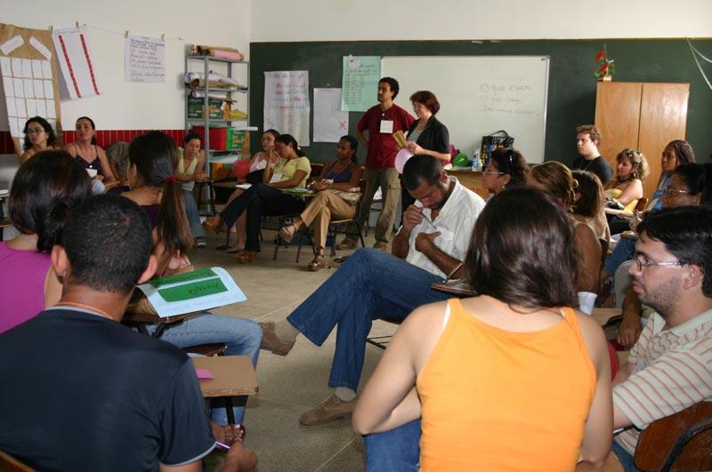 Até amanhã, sexta-feira, acontece o Curso de Formação de Articuladores Sociais voltado para professores do Programa Nacional de Inclusão de Jovens (Projovem) de Aracaju. O curso acontece em horário integral no Centro Municipal de Aperfeiçoamento de Recursos Humanos Professor Fernando Lins de Carvalho (Cemarh), localizado no bairro Siqueira Campos e faz parte das atividades do Projeto Dinamização da Estação Juventude e objetiva formar professores que resgatem a cidadania dos jovens e promovam a integração entre eles e a comunidade. O Projovem é desenvolvido em Aracaju através de uma parceria entre as secretarias municipais da Educação (Semed), da Assistência Social e Cidadania (Semasc), Governo e da Fundação Municipal do Trabalho (Fundat), além do Governo Federal. O Programa é voltado para jovens com idade entre 18 e 24 anos que já estudaram até a 4° série, mas não concluíram o Ensino Fundamental. Para a realização deste curso houve também uma parceria com a Fundação Roberto Marinho. De acordo com Célia Farias, coordenadora de projetos da Roberto Marinho, após o curso de formação de articuladores sociais haverá ainda um acompanhamento das atividades desempenhadas pelos professores, e novos cursos serão feitos de acordo com as necessidades verificadas pela comunidade. O consultor Ricardo Freitas, também da Roberto Marinho, que é doutor em Comunicação e Cultura pela Universidade Federal do Rio de Janeiro (UFRJ) veio participar do curso para oferecer embasamento teórico aos docentes do Projovem. Esse projeto é inovador por ter ido até a academia procurar respaldo científico para suas ações. Procuramos trabalhar os conceitos com os professores de forma simples e lúdica, disse o consultor.