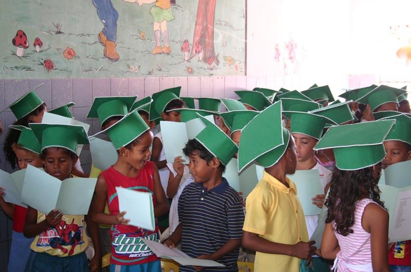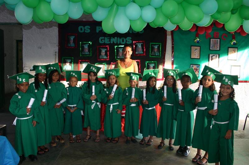 Neste final de semana, várias escolas de educação infantil da rede municipal de ensino realizaram as formaturas do ABC de seus alunos, a exemplo da José Sales (bairro Industrial), Manoel Eugênio (Santos Dumont) e Elias Montalvão (Mosqueiro), que é uma unidade de ensino fundamental, mas que oferece ensino pré-escolar. Este ritual, que é uma tradição nas escolas da rede, marca a passagem dos alunos da pré-escola para o ensino fundamental, ato solene comemorado não somente pelos pequenos, mas também pelos pais. A Emei José Sales realizou o evento em dois momentos. O primeiro aconteceu na Igreja São Pedro Pescador, no Bairro Industrial, onde houve a celebração da missa em Ação de Graças pelas crianças. O segundo momento foi composto pela diplomação e por uma animada festa. Na Emei. Manoel Eugênio houve juramento dos alunos, execução do Hino Nacional e apresentação do coral da Escola, que cantou a música ABC do sertão, de Luiz Gonzaga e Zé Dantas, sem faltar, é claro, o recebimento do tão sonhado diploma. Essa é a primeira cerimônia da qual minha filha participa, por isso, não só ela, mas eu também estou muito feliz, pois consegui perceber com maior clareza que ela está crescendo, declarou Izaltina Alves dos Santos, mãe de uma aluna do Manoel Eugênio. Para Júlia Adrielle Pereira, de seis anos e também estudante da Emei, o mais difícil vai ser deixar a escola. Sentirei muita falta dos meus colegas e professores, garantiu. A festança também aconteceu na Emei. Elias Montalvão, quando ´Os pequenos gênios´, nome dado à turma de concludentes, composta por 12 pequeninos, receberam seus certificados, orgulho que era composto não só pelo diploma, mas também por estarem vestidos em togas e receberem os anéis de ´Doutores do ABC´. Outro momento que se tornará inesquecível para os pequenos e seus pais, foi o da assinatura do livro de formandos, onde ficará registrado a participação deles na história daquela instituição de ensino. A celebração da formatura do ABC é uma tradição da Elias Montalvão que, segundo a coordenadora pedagógica, Maria Nadja de Carvalho Cardoso, acontece todos os anos desde 1999. Entendemos que é uma forma de motivar os alunos a prosseguirem nos estudos, pois subiram o primeiro degrau na educação formal e sonhamos com eles na universidade, declarou a coordenadora, salientando também que o momento serve para aproximar ainda mais a comunidade da escola. É importante esta proximidade da família para que possam cobrar dos professores e nos dar sugestões, auxiliando assim, no nosso crescimento. Fiquei satisfeita ao ver que muitos homens estavam presentes, dado que na nossa cultura atribui-se à mulher a tarefa de cuidar das crianças. Sem falar que geralmente só vemos mães em reuniões da escola, então esta surpresa, de vê-los interessados nas conquistas dos filhos, me deixou muito feliz, comentou. Carla Leonária, mãe da aluna Maria Ketly, falou da filha com um sorriso cheio de orgulho. Ela evoluiu muito e está preparada para estudar a primeira série. Ainda vou vê-la formada e seguindo a profissão que escolher, garantiu a mãe, que teve o depoimento completado pelo da filha, ao dizer convicta em que pretendia formar-se. Eu quero ser professora, concluiu.
