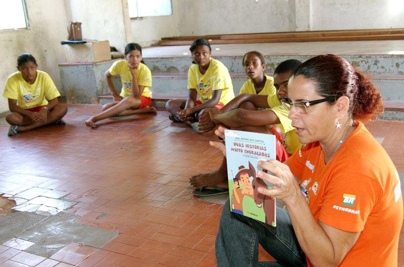 Durante o período de férias, a Biblioteca Municipal Ivone de Menezes, localizada no conjunto Augusto Franco, está realizando mais uma edição do projeto ´A Hora do Conto´. Desta vez o projeto está sendo realizado em parceria com alunos do Instituto Recriando, através do Projeto Recriando Caminhos. As crianças são atendidas na Escola Estadual São Lourenço, por meio do projeto e participam de atividades externas, como as atividades da Biblioteca Ivone de Menezes. Elas estão distribuídas entre os turnos, manhã e tarde, totalizando 70 alunos. No local os alunos participam de aulas de capoeira, dança, futebol, além de participar do ´Baú de Leitura´, com leituras de livros, contando ainda com orientações de estudos. De acordo com a coordenadora local, Aricelma Marques, essa é uma grande oportunidade de obter novos conhecimentos. Nas atividades os alunos aprendem, se divertem e passam ainda a conhecer seus direitos, por meio do Estatuto da Criança e do Adolescente (ECA), adquirindo uma visão crítica das leituras realizadas, explica. Aqui os educadores do Recriando fazem a leitura, logo após, os alunos recriam a história, através de desenhos, dramatização, desenhos. Aqui elas recontam a história da maneira que foi ela foi entendida. Eles se divertem aprendendo, e nós acabamos aprendendo com eles também, comenta. Para a adolescente Ana Gleize Matos, 14, as atividades são uma forma de aprender e conhecer outros adolescentes. Aqui eu danço, aprendo e me divirto muito, além de ser orientada nos estudos, o que mudou meu comportamento na escola e minhas notas agora são muito melhores, explica Ana. Tatiara Santana, colega de Ana Gleize, ressalta que aprender seus direitos e deveres é o mais importante. Aqui aprendi que tenho obrigações na escola, em casa e em qualquer lugar que eu esteja, mas tenho direito também, diz entusiasmada.