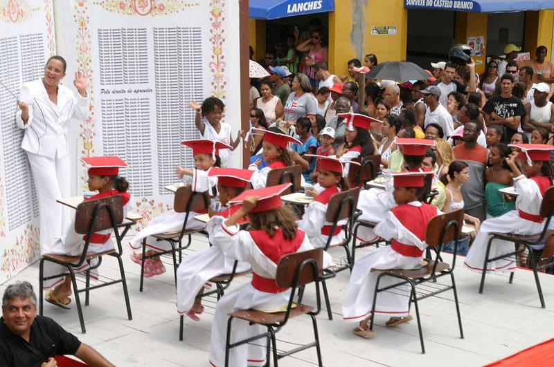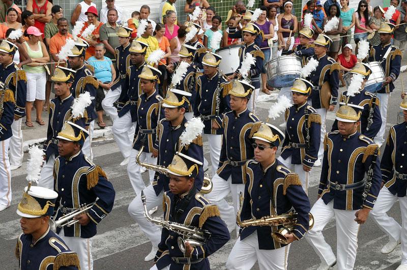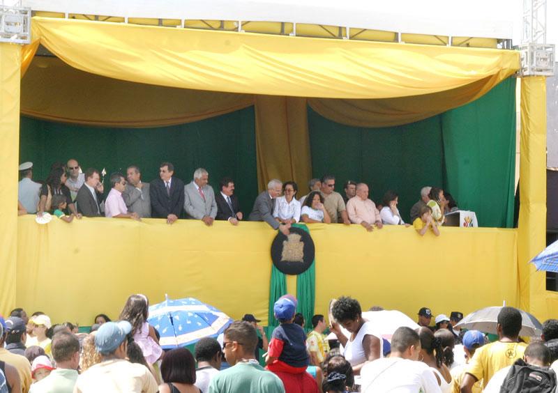 Centenas de pessoas participaram na manhã de ontem, domingo, do desfile cívico 2007 em comemoração aos 185 anos de independência do Brasil, promovido pela Prefeitura de Aracaju, por meio da Secretaria Municipal da Educação (Semed). As atenções dos espectadores, entre eles o prefeito Edvaldo Nogueira, estavam voltadas para os alunos de 34 escolas da capital, que deram uma verdadeira demonstração de amor à pátria. O tradicional evento, que como em anos anteriores aconteceu na rua Bahia, bairro Siqueira Campos, teve como tema ´O imaginário infanto-juvenil pelo Direito de Aprender´, em alusão à campanha lançada no início do mês passado pelo prefeito Edvaldo Nogueira, que estabelece uma série de ações voltadas para a melhoria da qualidade do ensino público. Segundo a secretária municipal de Educação, Tereza Cristina, o motivo da escolha do tema foi a vontade de mostrar, como em uma grande aula pública, os diversos instrumentos da aprendizagem: livros, músicas, fábulas, filmes, desenhos animados, gibis, teatro, brincadeiras, entre outros. “Tudo isso com a preocupação de resgatar o imaginário infanto-juvenil para expressar o amor à pátria e cultuar os símbolos da nação de maneira lúdica, divertida e colorida”, explicou Tereza. Foi exatamente isso que o público viu. Além de bandas, bailarinos, atores e atletas das escolas participantes, também figuraram no desfile fadas, bruxas, super-heróis e os mais famosos personagens saídos de livros infantis, programas de TV e revistas em quadrinhos. A cada nova aparição, uma surpresa para os espectadores. A funcionária de serviços gerais Iraildes Vieira, por exemplo, disse ter ficado encantada. “O desfile foi muito lindo, caprichado mesmo. Todo mundo está gostando. É sempre bom lembrar o dia da independência do Brasil, que para mim significa liberdade”, falou. O prefeito Edvaldo Nogueira também contou que ficou emocionado com o desfile. “É muito bom ver o sentimento de brasilidade tão forte nas crianças e jovens. Organizamos esse evento por dois motivos: primeiro para estimular o amor pela pátria e pelos valores ligados à nação; depois porque queríamos mostrar nossa preocupação com a melhoria da qualidade do ensino para que, com isso, possamos contribuir para a construção de um país melhor. É uma forma de convocar toda a população a participar da campanha Pelo Direito de Aprender”, destacou. O vice-governador do Estado, Belivaldo Chagas, também presente ao evento, elogiou a iniciativa da Prefeitura e disse ser extremamente importante o despertar do espírito cívico e da identidade nacional, bem como o resgate da história brasileira. Demonstrando ter entendido o significado do 7 de setembro, a aluna do Colégio Militar, Nadine Andrade, que participou do desfile, disse que, apesar de cansada, estava muito satisfeita por ter tido a oportunidade de mostrar o orgulho que tem em ser brasileira. Organização O desfile foi dividido em 11 sub-temas: clássicos da literatura mundial, folclore brasileiro, desenho animado, gibis, programas infantis, grupos musicais, brinquedos e brincadeiras, seriados de TV, filmes, teatro infantil e literatura infanto-juvenil. Cada escola apresentou um pouquinho do que havia sido cuidadosamente planejado pela Semed. Antes dos alunos, desfilaram representantes da Marinha do Brasil, Exército, Polícias Militar de Sergipe e Rodoviária Federal, Guarda Municipal, escoteiros, Corpo de Bombeiros, Grupo de Idosos da Secretaria Municipal de Assistência Social e Cidadania (Semasc), da Superintendência Municipal de Transporte e Trânsito (SMTT) e do Grupo de Desbravadores da Igreja Adventista do 7° Dia. A secretária municipal de Educação contou que para que tudo saísse conforme o pretendido, as equipes da Semed e das escolas participantes tiveram muito trabalho. “Fizemos uma grande e aprofundada pesquisa sobre o tema escolhido e depois nos preocupamos com a concepção artística do desfile. “Queríamos que fosse um evento bonito, mas sem exageros; que fosse fiel às tradições, mas que também trouxesse uma boa dose de criatividade”, destacou. Encerramento Um dos momentos mais marcantes do evento, além do hasteamento das bandeiras e execução do hino nacional, foi o encerramento do desfile, quando passou pela rua Bahia um carro alegórico reproduzindo uma sala de aula, trazendo alunos, professor e ainda o símbolo da campanha Pelo Direito de Aprender: o ´garoto-propaganda´, Ruan Jéferson, aluno da rede municipal. O carro foi seguido por uma ala composta por professores e coordenadores das escolas participantes. O prefeito fez questão de ir até os docentes para demonstrar reconhecimento pelo esforço e dedicação de cada um deles à missão de ensinar. “Vocês merecem todo o respeito e agradecimento que possa existir”, disse Edvaldo Nogueira aos professores. Presenças Também assistiram ao desfile, secretários municipais; os vereadores Fábio Henrique, Pastor Jony, Emanoel Nascimento, Valdir Santos e Sérgio Góis; a deputada estadual Tânia Soares; o secretário estadual de Finanças, Nilson Lima; o diretor-geral da Guarda Municipal, coronel Magno; o procurador do município de Aracaju, Luís Carlos; e a presidente do Conselho Municipal de Educação, Maria de Lourdes Gouveia.