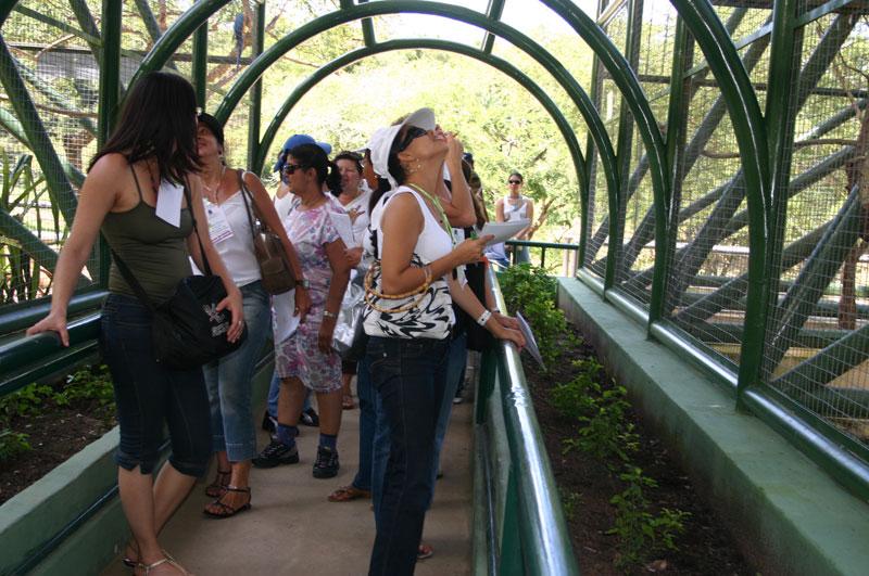 Esta semana os professores da educação infantil participantes do Programa Horas de Estudo vivenciaram uma atividade bastante diferente. Os cerca de 30 participantes foram levados ao Parque da Cidade, situado no bairro Industrial, para uma aula passeio com o tema: `A fauna e a flora: como explorar na Educação Infantil´. Essa iniciativa teve como objetivo colocar os docentes em contato com a realidade que está sendo estudada, para que depois desenvolvam atividades semelhantes com seus alunos. A aula teve início com um passeio no mirante, onde está a imagem de Nossa Senhora da Conceição, seguido por uma visita ao teleférico. A segunda parte da visita aconteceu no zoológico, onde os professores puderam conhecer hábitos e características de animais como leão, macaco, cobra e avestruz. Durante o trajeto, os participantes receberam orientações sobre como realizar este tipo de atividade com seus alunos. A coordenadora de Educação Infantil da Secretaria Municipal da Educação, Isis Mota, falou sobre a importância da aula. Os Parâmetros Curriculares Nacionais (PCN) dizem que o ensino da natureza e sociedade deve organizar-se de tal forma que os alunos possam desenvolver a capacidade de formular questões, diagnosticar problemas reais e propor alternativas de solução para os mesmos. A excursão é uma estratégia que permite explorar não só áreas de preservação ou de conservação, mas também oportunizar o desenvolvimento de habilidades fundamentais para uma educação científica, declarou. Dentre a flora do Parque da Cidade, podem ser encontradas plantas típicas da região, como palmeiras e muitos arbustos, assim como Pau-Brasil, agora raro nas matas do país. Propiciar a aquisição de conhecimentos geográficos, históricos, econômicos, sociais, políticos, científicos e artísticos são algumas das contribuições que essa aula pode dar. Além disso, desenvolve as habilidades de observar, coletar, organizar e sistematizar dados, lidando com preservação ambiental, promovendo o enriquecimento do saber construído na sala de aula. Nosso maior interesse é despertar nos professores essa visão ecológica, para que eles passem para os alunos e também possam fazer um estudo in loco, já que a criança poderá aproveitar e aprender muito mais vendo e ouvindo os animais, conhecendo seu habitat e como eles vivem. Dessa maneira, passarão a valorizar mais o meio ambiente e os bichos que dele fazem parte, salientou Vilma Maria Torres Mendes, professora de biologia e responsável pela orientação do grupo. Para que o trabalho de campo tenha utilidade, segundo os participantes, é importante que se tenham os objetivos dela bem delimitados, e para isso, o professor deve saber exatamente quais os conteúdos que deseja trabalhar com seus estudantes. Esse dia serviu para relembrar vários conteúdos. Somos multiplicadores não só com os discentes, mas também com os nossos colegas de profissão. No dia 19 de outubro faremos uma visita semelhante a essa, mas desta vez com os alunos da escola onde trabalho, disse Valmira Rosenda Santos, coordenadora pedagógica da Escola Municipal de Educação Infantil Arthur Bispo do Rosário, situada no bairro Orlando Dantas.