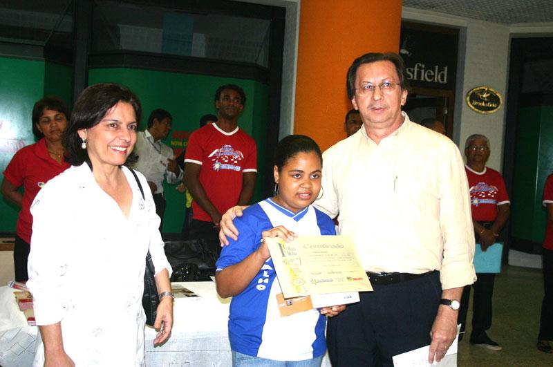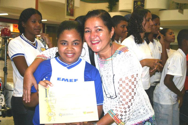 Dois alunos da rede municipal de ensino ficaram entre os três primeiros colocados no 1º Concurso Literário, realizado pelo Departamento Estadual de Trânsito em Sergipe (Detran/SE). A premiação foi entregue no final da tarde de ontem, terça-feira, na Praça de Eventos do Shopping Riomar, onde também foi finalizada a Semana Nacional de Trânsito. O concurso teve como tema central ´O Jovem e Trânsito´ e teve como objetivo incentivar crianças e adolescentes sobre a importância de serem conscientes sobre sua participação no trânsito. O evento teve início com a apresentação do Coral ´Detran em Canto´, em seguida o diretor-presidente do Órgão, Francisco Dantas, falou sobre a importância do concurso e da participação de jovens de escolas públicas. Esse é um momento de grande alegria, de poder premiar alunos de escolas públicas. Gostaria de parabenizar aos professores e alunos pela brilhante participação no concurso, disse. Cerca de 40 escolas das redes municipal e estadual de Sergipe participaram do concurso, onde foram avaliados adequação ao tema, clareza, objetividade, respeito às regras gramaticais e ortografia. A jovem Isabela Rayane Farias, 12, foi a segunda colocada. Ela é aluna da 6ª série da Escola Municipal de Ensino Fundamental Carvalho Neto, e ganhou uma máquina fotográfica digital. Já Denisson Oliveira Nascimento, 16, foi o terceiro colocado no concurso. O garoto é aluno da 8ª série da Escola Municipal de Ensino Fundamental Laonte Gama da Silva, do bairro Santa Maria, que levou uma bicicleta com 21 marchas como prêmio. Para Isabela Rayane o concurso serviu para que os jovens possam cada vez mais se conscientizar sobre o trânsito. As crianças e adolescentes já têm noção do que é certo e errado, já conhecem as leis, mas ainda precisam se conscientizar de que o trânsito é perigoso, de que não adianta só conhecer as normas, mas de que é preciso praticá-las, disse consciente a garota, enquanto utilizava sua máquina digital com as amigas da escola. Denisson Oliveira estava ansioso para receber seu prêmio e disse que o concurso mostrou que o jovem deve ter responsabilidade no trânsito. Esta competição acabou dando noções de educação no trânsito. É importante sabermos como agir nas ruas da cidade, por isso, digo que o concurso foi muito legal, ainda mais por também ter ganhado uma bicicleta e agora, ter um meio de locomoção, disse animado o garoto. Para a mãe de Isabela, Cristina Farias, esse foi um momento muito emocionante em sua vida, já que pode ver o potencial de sua filha, aliado ao bom trabalho que é desenvolvido na Emef Carvalho Neto. Minha filha está de parabéns. Ela já estudou em colégio particular e hoje, depois dessa premiação, posso garantir que o ensino que ela vem tendo na rede municipal é do mesmo nível, ou senão melhor. Isabela está se desenvolvendo muito bem e claro, tendo o excelente apoio dos professores, enfatizou Cristina. Para a secretária municipal da Educação, a professora Tereza Cristina Cerqueira da Graça, a premiação dos dois alunos foi um momento de extrema felicidade, pois demonstra o bom trabalho realizado nas escolas do município. Estou extremamente feliz, pois o resultado dos dois jovens referenda a campanha pelo ´Direito de Aprender´, e mostra que estamos desenvolvendo um ensino de qualidade na rede municipal. Diante de tantos alunos que participaram do concurso eles se mostraram qualificados. Foi uma honra presenciar este momento e repito, estou muito feliz, declarou a professora, que fez questão de parabenizar os dois alunos da rede municipal.