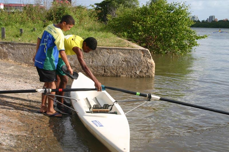 Educação, esporte, cidadania e preservação do meio ambiente. Essas são algumas das virtudes trabalhadas no projeto ´Remo Brasil´, desenvolvido pela Associação de Remo do Rio Poxim com crianças da Escola Municipal de Ensino Fundamental (Emef) Presidente Juscelino Kubitschek, situado no Bairro Coroa do Meio. O projeto conta ao todo com 25 jovens e já começa a colher os primeiros resultados. Neste final de semana cinco alunos estarão competindo na cidade do Recife, em Pernambuco. Eles vão representar o Estado no 1º Festival de Remo Clube Náutico Capibaribe, que acontece no próximo domingo, dia 16, e envolve clubes de Pernambuco, Rio Grande do Norte, Paraíba e Sergipe. Há cerca de um ano esses cinco jovens que vão competir começaram a se destacar nos treinamentos do projeto, que acontecem sempre no rio Sergipe, nas proximidades do Shopping Riomar. Os garotos Heliomar Barros Melo Souza, 14; Leandro de Lima Rocha, 14, John Lennon Cavalcante de Jesus, 14; Leonardo Santos da Silva, 14, e Mayke Alves dos Santos, 15, todos da 8ª série da Emef Presidente Juscelino Kubitschek, estarão participando da primeira competição de remo em suas vidas. Depois de quase um ano de treinamento os adolescentes vivem a expectativa de se destacarem em outro Estado. Vão competir nas modalidades ´skiff´ - em barcos profissionais - e ´canoe´ - para iniciantes, em distancias que variam de 500 a 1000 metros. Sabemos da importância do remo em nossas vidas e com certeza estamos indo para Recife, para com orgulho poder representar bem a nossa escola, o nosso clube e o nosso Estado. Por isso, todos os competidores do país devem nos aguardar, pois não daremos folga para eles. Vamos dar o melhor nessa competição, afirmou empolgado Mayke Alves dos Santos. O pequeno atleta, que mora com o pai, a mãe e mais sete irmãos em uma casa simples no bairro Coroa do Meio, nas horas vagas ajuda o irmão, que trabalha como padeiro. Tenho que trabalhar para não pedir nada para minha mãe, e o que resta eu entrego pra ela para completar a renda da família disse. Depois de passarem por alguns esportes como futebol, basquete e handball, os meninos ficaram conhecendo o projeto através do presidente da Associação de Remo, Dennis Pires Fernandes, que fez uma visita à escola e apresentou aos alunos um pouco do que seria o esporte. Depois que descobri a importância do esporte na minha vida, já que ele acaba me dando disciplina, melhorei até minhas notas no colégio, afirma o aluno Leonardo Santos Silva, que assim como Mayke, tem de ajudar no sustento da casa fazendo as vezes de auxiliar de fotógrafo, trabalhando junto com o padrinho. No início o esporte parecia ser um pouco difícil, mas depois fui pegando o jeito, aprendendo a técnica e hoje tudo ficou mais fácil. Agora é só treinar para cada vez mais ir aperfeiçoando e no futuro me tornar um profissional desseo esporte, falou entusiasmado John Lennon Cavalcante, que pela primeira vez vai fazer uma viagem para fora do Estado, e juntamente com seus colegas treina cerca de duas horas por dia. Projeto O projeto ´Remo Brasil´ é desenvolvido pela Associação e Remo do Rio Poxim com alunos da Emef Juscelino Kubitschek. O objetivo do projeto é despertar o jovem para a prática do remo, aliada à preservação do meio ambiente e aos estudos. Para que os meninos façam parte do projeto, e que depois eles dêem continuidade ao trabalho, é importante que tenham boas notas na escola, afirmou o professor e presidente da Associação, Dennis Pires Fernandes. Além do ensino do remo, no projeto existe a valorização do ser humano através da responsabilidade social, o desenvolvimento de habilidades voltadas para o espírito de coletividade, do trabalho em equipe e da liderança. Além disso, o projeto é desenvolvido às margens do rio Sergipe, o que acaba ajudando a preservar o rio, que está bastante degradado. O remo beneficia a criança, dá noções de disciplina, de ajuda ao próximo e também de cidadania. Algumas vezes desenvolvemos o projeto ´Caça ao Tesouro´. Na primeira edição os atletas tinham que recolher das águas garrafas peti e copos plásticos. Foi então que tivemos uma surpresa, pois foram encontradas televisões, espuma de colchão e sofás, entre outras coisas. Isso acabou fazendo com que os alunos ajudassem a limpar o rio, ação que se tornou natural para eles, pois quando estão treinando acabam recolhendo objetos que são nocivos à natureza, afirmou Dennis Fernandes. O presidente da Associação diz já ter dado o ponta-pé inicial para o projeto, que conta com a colaboração da Escola Municipal J.K., que tem 25 alunos envolvidos com a prática esportiva do remo. Esperamos mais ajuda do poder público e da iniciativa privada para que mais crianças possam ter a oportunidade de se desenvolverem como pessoa a partir da ajuda do esporte. Fazer esse tipo de acolhimento e de auxílio na adolescência, por volta dos 14 anos é importante, porque acabamos desviando esses meninos e meninas de caminhos ruins como as drogas, situação de rua ou outros bem piores, finalizou Denis Pires.