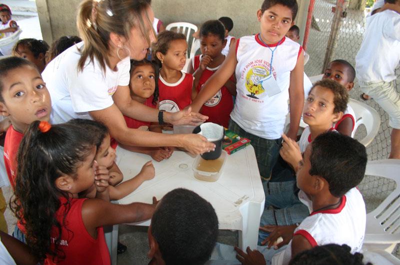 Durante todo o dia de ontem, 24, os alunos do 5º ano da Escola Municipal de Ensino Fundamental (Emef) Dom José Vicente Távora, localizada no bairro Manuel Preto, realizaram uma Feira de Ciências onde puderam aprender um pouco mais sobre a matéria de forma descontraída. O objetivo do evento foi despertar nas crianças o conhecimento científico de uma forma leve, de modo que os alunos possam adquirir experiência e aliar o ensinamento teórico à parte prática, que foi desenvolvida na quadra poliesportiva da unidade escolar. A atividade foi coordenada pela professora Maria Vaneide Ferreira, que acompanhou de perto o desenvolvimento das experiências ao longo de um mês, bem como as explicações dadas durante a atividade. Durante todo o ano desenvolvemos muita teoria, por isso é muito importante que trabalhemos também a prática, pois as crianças aprendem a trabalhar em grupo e isso cria um envolvimento entre os alunos. A comunidade também acompanhou os trabalhos das crianças, disse empolgada a professora Vaneide. Durante este mês de setembro os alunos viram na teoria como se forma o arco-íris, a diferença de misturas homogêneas e heterogêneas, como se purifica uma água utilizando métodos simples, aprendizado que em seguida passou a ser desenvolvido na prática e durante todo o dia de ontem foram apresentados. A pequena Ingrid Suellen Santos Souza, 10 anos, disse ter aprovado a idéia de apresentar os trabalhos desenvolvidos em sala de aula. Ela falou um pouco sobre o que aprendeu na Feira de Ciências. Apresentei um trabalho sobre misturas homogêneas e heterogêneas, e pude ver que o óleo a água não se juntam, e que a água e o sal podem se misturar. Achei importante o que fizemos porque aprendi muita coisa de uma forma divertida, disse. As crianças apresentaram também experiências relacionadas à respiração das plantas, a densidade da água, a sonoridade de recipientes com líquidos e ouviram explicações sobre o fenômeno da formação do arco-íris. O pequeno Emanoel Messias da Silva Neto, 10 anos, apresentou, juntamente com seus colegas, uma experiência onde foi possível ver a contaminação do ar. Utilizando pequenas tampas e uma cartolina branca, deixados ao tempo, podemos perceber a contaminação do ar que respiramos. Gostei muito da experiência de poder apresentar o que aprendemos numa feira de ciências, até porque foi tudo feito de uma maneira muito divertida, disse encantado o pequeno Emanoel. O legal desse trabalho foi que conseguimos aliar o aprendizado e todas as suas formas, de uma maneira divertida, em que todas as crianças puderam compartilhar com seus colegas de turma o conhecimento adquirido em seus projetos. Durante as apresentações adquiriram também muita disciplina, declarou a professora Vaneide Ferreira.