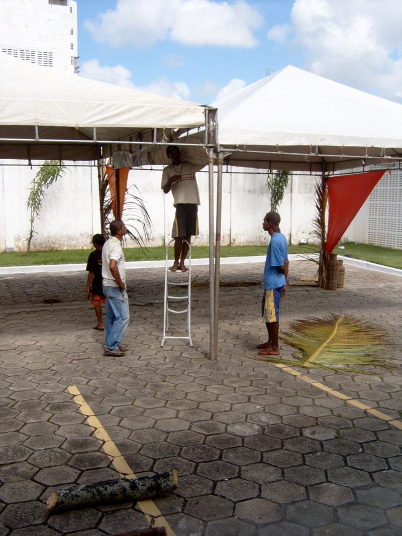 Os servidores municipais também vão arear as fivelas. É que hoje, quarta-feira, a partir das 14 horas, acontece o Forró no Centro, organizado pela Secretaria Municipal de Administração (Semad). A montagem da estrutura da festa, que tem uma expectativa de participação de 500 pessoas, foi iniciada ontem, terça-feira. O evento, que acontece no Centro Administrativo Prefeito Aloísio Campos, envolverá todas as secretarias localizadas no Centro Administrativo, além da Secretaria Municipal de Finanças (Sefin). Segundo a diretora de Recursos Humanos da Prefeitura, Valdinete Silva, a festa acontece atendendo a um pedido do prefeito Edvaldo Nogueira. Tudo começou com a festa em homenagem às mães-servidoras. Então, o prefeito pediu que em todas as datas festivas fossem preparadas festas em homenagem aos servidores. Então, até o Natal, todas as datas comemorativas serão celebradas, informa Valdinete. O Forró no Centro será uma tarde de descontração, tendo como objetivo integrar os servidores de várias secretarias em um momento de celebração da tradição mais rica do Nordeste. A animação ficará por conta de um trio de forró pé-de-serra. Além disso, haverá apresentações de duas quadrilhas trazidas pela Secretaria Municipal de Assistência Social e Cidadania (Semasc), sendo uma de idosos e outra de crianças. No cardápio, nada melhor do que as peculiares comidas típicas das festas juninas. Confira também a cobertura on line do Forró Caju 2007