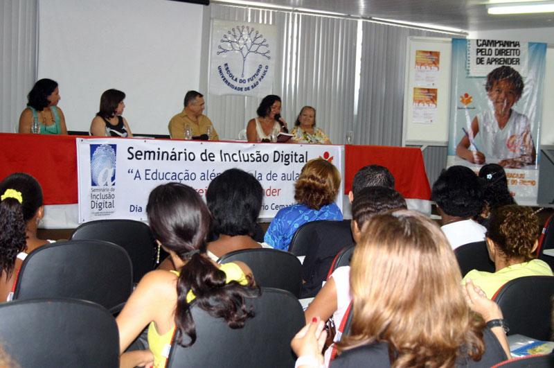Durante os próximos quatro dias, os professores da rede municipal de ensino participarão do `Seminário de Inclusão Digital a educação além da sala de aula, pelo direito de aprender´. O evento está sendo realizado no Centro Municipal de Aperfeiçoamento de Recursos Humanos Professor Fernando Lins de Carvalho (Cemarh), localizado no bairro Siqueira Campos, e foi aberto na manhã de hoje, segunda-feira. Estiveram presentes a secretária municipal da Educação, a professora Tereza Cristina Cerqueira da Graça; o coordenador do Núcleo de Tecnologia Educacional (NTE) da Secretaria Municipal da Educação (Semed), Neusvaldo Silva Lima; a presidente do Conselho Municipal de Educação (Conmea), Maria de Lourdes Gouvêa; além das representantes do Instituto Oi Futuro e do Núcleo da Escola do Futuro da Universidade de São Paulo (USP), Miriam Nunes Carvalho e Maria Cláudia Regis. O evento é voltado aos educadores, que durante esse período discutirão as possibilidades do uso da tecnologia no desenvolvimento de projetos educacionais. Eles serão sensibilizados para o uso da tecnologia nas escolas da rede pública municipal, assim como sobre a importância da Internet como ferramenta de comunicação e aprendizagem. Além disso, serão apresentados a alternativas teóricas de desenvolvimento pedagógico, contribuindo para a qualificação e o aperfeiçoamento deles. O coordenador do NTE/Semed, Neusvaldo Lima, ressaltou a importância do uso da tecnologia como aliada no processo educacional. Já trabalho nessa área há mais de 15 anos e sei como a tecnologia é uma ferramenta essencial. Ela pode facilitar o acesso à informação, à comunicação e às ferramentas abertas, que promovem a construção de conteúdos. Estamos fazendo isso principalmente através de projetos nos quais são discutidos temas da comunicação e onde oferecemos cursos à distância, como no projeto Tonomundo, afirmou. Após a abertura, foi realizada uma palestra com o tema `Desafios das tecnologias para uma escola em rede´, com o professor doutor Ronaldo Nunes Linhares. O palestrante abordou questões pertinentes ao uso do livro didático e como as tecnologias estão mudando o trabalho dos educadores e a escola. Muitas vezes achamos que a máquina é nossa inimiga, que vai nos substituir, mas isso é uma falácia. Precisamos nos conscientizar de que o computador não é oposto ao livro didático, mas complementar, e nós professores precisamos estar aptos a trabalhar com ele, ou estaremos excluídos, disse. A secretária municipal da Educação fez questão de chamar atenção para o uso dos computadores nas escolas. Já temos laboratórios de informática em várias escolas municipais e queremos ampliar este número no ano que vem. Mas a nossa meta não é só colocar os laboratórios e sim alertar os professores de que eles precisam estar sensibilizados para o uso desses equipamentos, através de atividades realmente construtivas, disse Tereza Cristina. Na tarde desta segunda-feira, será feita a apresentação geral do projeto Tonomundo pela representante da Escola do Futuro/USP, Maria Cláudia Regis, assim como o seu funcionamento no município de Aracaju e mais especificamente, na Escola Municipal de Ensino Fundamental Maria Thétis Nunes, localizada no bairro América. Após essa explanação, será a vez do professor Roberto Delmas da Silva falar sobre O computador e a internet na educação- ferramenta para transmitir ou construir conhecimento?. Ainda nos dias 30 e 31 de outubro, seguindo em primeiro de novembro, os participantes, divididos em duas turmas de 60 pessoas, farão o curso `Introdução ao pensamento transdiciplinar´, ministrado pela professora msc Heloísa Steffen, da Escola do Futuro da USP. O projeto Tonomundo O projeto Tonomundo é viabilizado em Aracaju através de uma parceria entre a Semed, o Instituto OI Futuro e a Escola do Futuro da USP. Espalhado por 16 Estados brasileiros, foi iniciado em Sergipe nos municípios de Ribeirópolis e São Domingos. A Semed implantou essa experiência em seis escolas da rede, que atuam como projetos piloto. São elas: Emef`s Juscelino Kubistichek, localizada na Coroa do Meio; Maria Thétis Nunes e Santa Rita de Cássia, ambas no bairro América; Anísio Teixeira, bairro Atalaia; Tancredo Neves, bairro Luzia; e Manoel Bomfim, bairro Bugio. O projeto é realizado nas escolas de Aracaju através de nove formadores mediadores. O seu principal objetivo é realizar ações comunitárias nos locais onde as escolas ficam situadas através de quatro temas principais: identidade cultural, cidadania, integração família versus escola e meio ambiente, e desenvolvimento sustentável. Na avaliação da representante da escola do futuro, Aracaju está cumprindo todas as metas. Nossas expectativas estão sendo totalmente alcançadas. Além de promover a inclusão digital, conscientizamos as pessoas sobre a necessidade do acesso à tecnologia e de como ela pode promover a melhoria do ensino, declarou Maria Cláudia Regis.