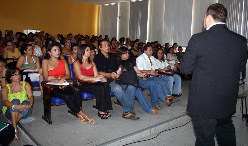Durante todo o dia de ontem, terça-feira, professores da rede municipal de ensino estiveram reunidos no auditório da Fundação de Apoio à Pesquisa de Sergipe (Fapese), localizado na rua Lagarto, participando da Capacitação dos Pré-Candidatos a Coordenadores Escolares 2007. Esta é uma realização inédita, que tem como objetivo mostrar a esse professores, que pensam em se candidatar ao cargo de coordenador escolar, como funciona o sistema educacional do município, a estrutura organizacional da Secretaria Municipal da Educação (Semed) e a legislação pertinente ao assunto, dentre outras situações. A eleição para coordenador está prevista para a primeira quinzena de dezembro deste ano. O número de participantes foi bem maior que o esperado: mais de 150 pré-candidatos, que assistiram a diversas palestras, dentre elas, a do professor e administrador Jorge Luiz C. Nunes, docente da Faculdade São Luiz de França. Ele falou sobre Ética e Liderança, conversa que pôde contribuir em dois aspectos fundamentais. O primeiro deles foi a gestão escolar, pois a ética está presente na atuação profissional dos que trabalham na escola, e a liderança é fundamental para a formação de um gestor de sucesso. Através de uma apresentação baseada em aspectos multimídias como vídeos e músicas, o professor fez uma conexão sobre a ética como caráter; e a liderança, tida como caráter em ação. Foi abordada ainda a diferença entre liderança e gerenciamento. As pessoas precisam perceber a importância e a responsabilidade de exercer um papel de liderança, como o de coordenador escolar. Meu objetivo é fazer com que entendam que a nossa vida é feita de escolhas e que somos responsáveis por elas, disse Jorge Luiz. A coordenadora de Gestão Escolar da Semed, Maria José Guimarães, ressaltou que a gestão democrática da rede municipal se efetiva na escola. Pensamos num evento que demonstrasse o interesse dos que querem se candidatar. Durante essa capacitação estaremos dando oportunidade e conhecimento para aqueles que desejam contribuir cm o processo de gestão democrática, comentou. Corroborando com a opinião da coordenadora de Gestão Escolar, a secretária municipal da Educação, a professora Tereza Cristina Cerqueira da Graça, lembrou que a gestão democrática é uma conquista do magistério de Aracaju e que se dá pela participação contínua. É preciso fortalecer essa gestão e essa quantidade de pessoas aqui presentes demonstra o amadurecimento e o interesse da categoria, ressaltou a secretária. Para os pré-candidatos o primeiro dia de capacitação foi a oportunidade de conhecer o funcionamento da rede de ensino, tirar dúvidas e decidir sobre a viabilidade de concorrer às eleições de dezembro. A auxiliar administrativa Maria Roseli Araújo, que trabalha na Escola Municipal de Ensino Fundamental Professor José Antônio da Costa Melo, situada no Bairro Getúlio Vargas, falou sobre a importância do evento e por que quer ser candidata. Acho que posso contribuir muito com a instituição de ensino promovendo ações que ainda não foram realizadas. Para ser coordenador é preciso antes de tudo amar a sua escola e ter vontade de trabalhar por ela, declarou.