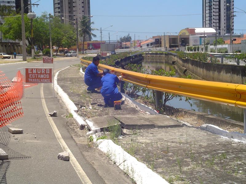 Localizado no bairro São José, o canal da avenida Gonçalo Prado Rollemberg apresentava alguns pontos de desgaste na estrutura do guarda-corpo e na pintura que o ornamentava. A Emurb diagnosticou o problema e programa um verdadeiro conjunto de ações. Primeiro, equipes da empresa realizaram a recuperação da estrutura do guarda-corpo: as placas de concreto que apresentavam ranhuras foram substituídas por novas estruturas de concreto ainda mais resistentes. Depois, equipes de manutenção iniciaram a recuperação do piso da calçada que compõe o canal. Em seguida, outra equipe encerrou o programa de ações com a pintura nas cores vermelha e amarela.