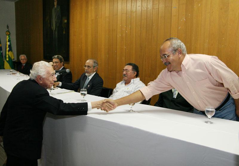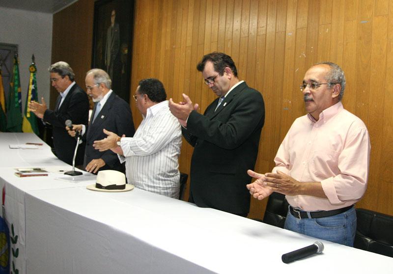 Ontem, dia 6 de agosto, o Instituto Histórico e Geográfico de Sergipe (IHGSE) completou 95 anos de existência. Em uma solenidade comemorativa, o presidente da ´Casa dos Sergipe´, Ibarê Dantas, homenageou algumas personalidades com entrega do título de sócio benemérito pelos serviços prestados ao Instituto. O prefeito de Aracaju, Edvaldo Nogueira, representado na ocasião pelo secretário chefe de gabinete, Bosco Rolemberg, foi um dos homenageados. Antes do início do evento, foi realizado um minuto de silêncio pelo falecimento da professora Ofenísia Freire e do artista plástico J. Inácio. A seguir teve início uma apresentação do grupo de música antiga Renantique. Segundo o presidente do IHGSE, professor Ibarê Dantas, essa homenagem deve-se ao fato de a Prefeitura de Aracaju ser um importante parceiro do Instituto. “O prefeito Edvaldo Nogueira tem sido um sócio efetivo bem feitor do Instituto, então tem favorecido bastante o espaço. Foi com a iniciativa dele que fizemos um convênio, e é um dos principais responsáveis pelo funcionamento do Instituto hoje”, contou, acrescentando que nos últimos anos as contribuições de gestores públicos aumentaram, permitindo cuidar melhor do patrimônio do Instituto e ampliar seus serviços à comunidade. O município colabora há vários anos com o IHGSE. Em uma das últimas iniciativas foi firmado um convênio no valor de R$ 3 mil, repassados pelo município. Além disso, a Prefeitura realiza o pagamento de três estagiários e um funcionário que servem ao Instituto. Ao receber o certificado em nome do prefeito, Bosco Rolemberg falou do compromisso da Prefeitura em ajudar os trabalhos do IHGSE. “Eu agradeço, em nome do prefeito Edvaldo Nogueira, a homenagem desta casa dos sergipanos e quero dizer que a Prefeitura de Aracaju, de forma modesta, tem tido a preocupação de ajudar os trabalhos desenvolvidos nessa casa. Acreditamos que uma sociedade e um povo - através do conhecimento da sua História, da sistematização das experiências positivas, da busca pela identidade do povo sergipano -, tem todas as condições, a partir desses esforços, em construir um futuro melhor para todos. Deixo o nosso sincero agradecimento e parabéns a todos os sócios dessa casa”, disse. Também foram homenageados o governador Marcelo Deda; o secretário de Cultura do Estado, Luiz Alberto dos Santos; a presidente de Honra da casa, professora Maria Thétis Nunes; o reitor da Universidade Federal de Sergipe (UFS), Josué Modesto dos Passos Subrinho, que foi representado pelo vice-reitor Ângelo Antonioli; a secretária de inclusão, assistência e desenvolvimento social, Ana Lúcia Menezes; o presidente da Academia Sergipana de Letras (ASL), Anderson Nascimento; e o antigo sócio do IHGSE, João Gomes Barreto. O governador Marcelo Déda, que na ocasião anunciou o tombamento do prédio como patrimônio histórico e arquitetônico do Estado, também ressaltou a importância do Instituto para a pesquisa e a memória. “Venho trazer em meu nome e do Governo do Estado os nossos cumprimentos a todos que compõem essa importante casa por essa data cheia de significados. É um fato digno de registro a celebração de 95 anos do Instituto, um patrimônio indiscutível do Estado de Sergipe, pelo acervo e pela trajetória”, declarou.