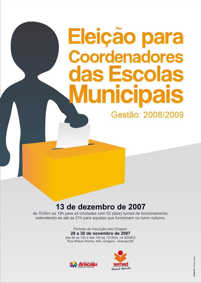 A campanha eleitoral só pode acontecer no período de 6 a 11 de dezembro, sempre respeitando os critérios definidos no regimento eleitoral. A eleição está marcada para o dia 13 do corrente mês e a festa de posse no dia 27, no Iate Clube de Aracaju. A coordenadoria de Gestão Escolar, responsável pela organização do processo eleitoral, recebeu 90 inscrições, o que demonstra, segundo Maria José, o crescente interesse de quem está nas instituições de ensino em participar do pleito. Todas as escolas da rede com indicação para um novo pleito eleitoral inscreveram chapas, o que significa que a eleição será realizada em 70 das 80 unidades integrantes da rede pública municipal de ensino.
