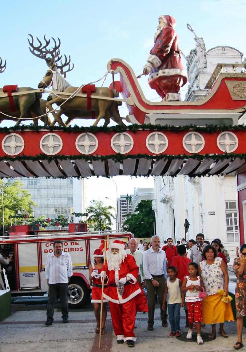 O ponto de partida de Papai Noel na tarde de hoje foi a colina do bairro Santo Antônio, de onde ele seguiu desfilando em carro aberto por vários bairros da capital, chegando às 17 horas ao Centro. Entre os calçadões da João Pessoa e Laranjeiras, um trono já o esperava para que ele recepcionasse pessoas de todas as idades, em especial as crianças, que não perderam a oportunidade de chegar perto de uma das figuras mais esperadas nessa época.