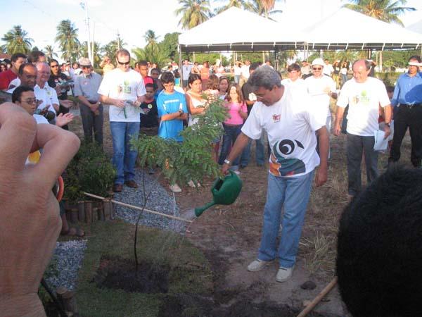 Aracaju plantando história. Foi pensando nesta idéia que a Prefeitura de Aracaju, através da Empresa Municipal de Serviços Urbanos (Emsurb), presenteou a cidade com o Bosque Sesquicentenário, com 150 árvores das mais variadas espécies. De acordo com o coordenador do Horto da Emsurb, Ademilson Vieira, as árvores recebem cuidados diários. Serviços como irrigação, tutoramento (haste colocada próximo à planta para que esta cresça ereta), capina, combate a pragas e insetos são realizados por um agente exclusivamente dedicado ao Bosque. É preciso que uma pessoa fique tomando conta do Bosque, observando diariamente o desenvolvimento de cada planta, pois existem espécies que precisam de cuidados especiais, como é o caso do Pau-Brasil, já que essa planta possui um desenvolvimento lento, disse o coordenador. Em torno de cinco anos toda a comunidade poderá admirar ainda mais o Bosque. Existem plantas que já estarão grandes, com cerca de dois metros de altura, podendo proporcionar sombra. Como é o caso das espécies Mulungu, Canafístula e Aroeira, informou Ademilson Vieira. As 150 árvores foram plantadas no Parque da Sementeira no dia 17 de março, data de aniversário da capital. Esse plantio deu início também ao reflorestamento do Parque Augusto Franco (Sementeira), já que o objetivo é transformá-lo em um grande bosque. Todas as árvores que foram plantadas no bosque são nativas da Mata Atlântica, cuja vegetação pode variar de 25m a 35m de altura.