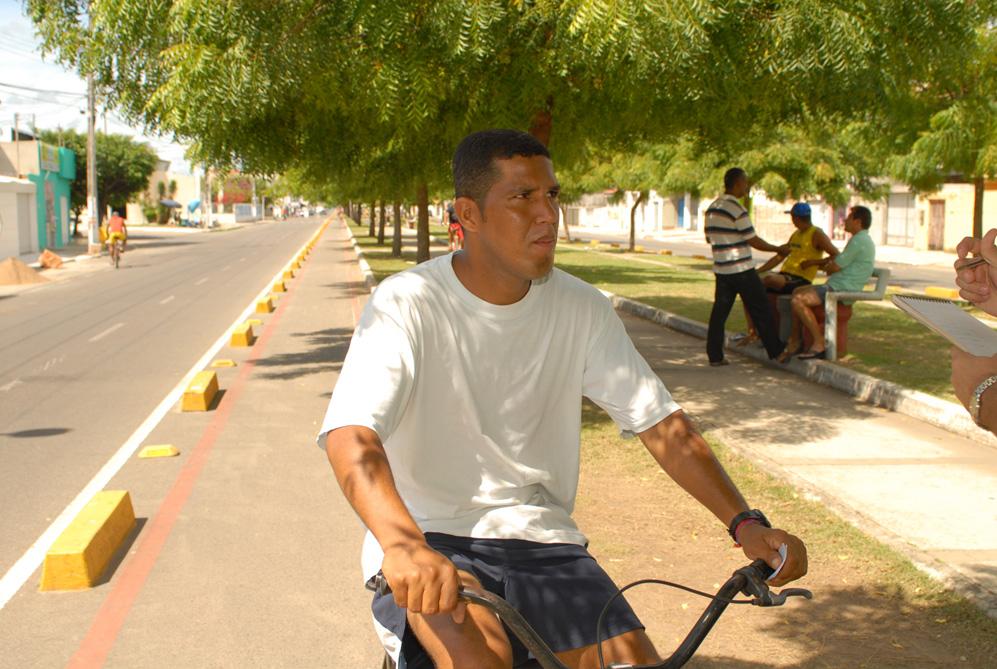 O office-boy Sandro Gonzaga, 18, se desloca diariamente pela ciclovia da Gasoduto para fazer entregas. Essa opção em sua rotina só surgiu a partir da urbanização realizada pela PMA, visto que ali, até pouco tempo atrás, as bicicletas disputavam o mesmo espaço ocupado pelos automóveis. "Passo aqui quase todo dia porque fica mais fácil para mim trabalhar pela ciclovia", coloca.