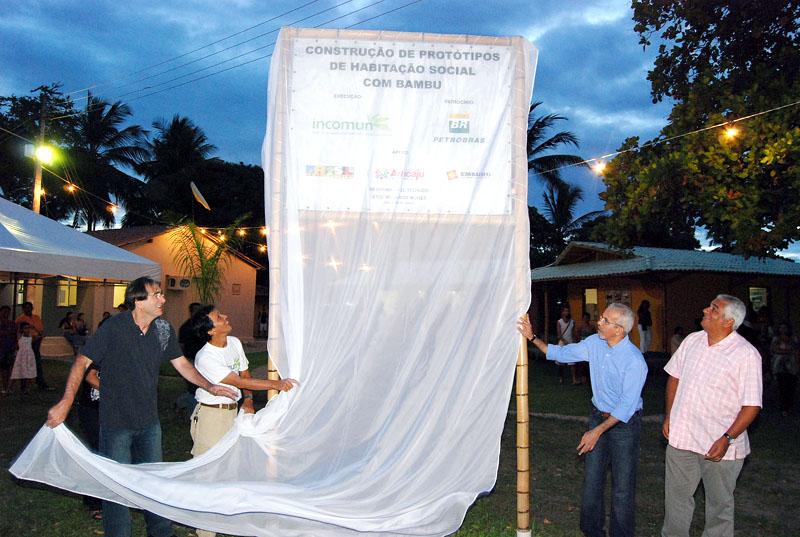 Um projeto inovador e pioneiro em Aracaju foi posto em prática na noite de ontem, domingo, quando o prefeito Edvaldo Nogueira inaugurou dois protótipos de habitações sociais construídos com bambu no Parque Augusto Franco (Sementeira). Fruto de uma parceria da Prefeitura de Aracaju com a Petrobras, representada no ato pelo gerente geral da Unidade Sergipe/Alagoas (UNSEAL), Eugênio Dezen, e também com o Instituto de Desenvolvimento Comunitário Sustentável (Incomum), coordenado pelo arquiteto Ricardo Nunes.