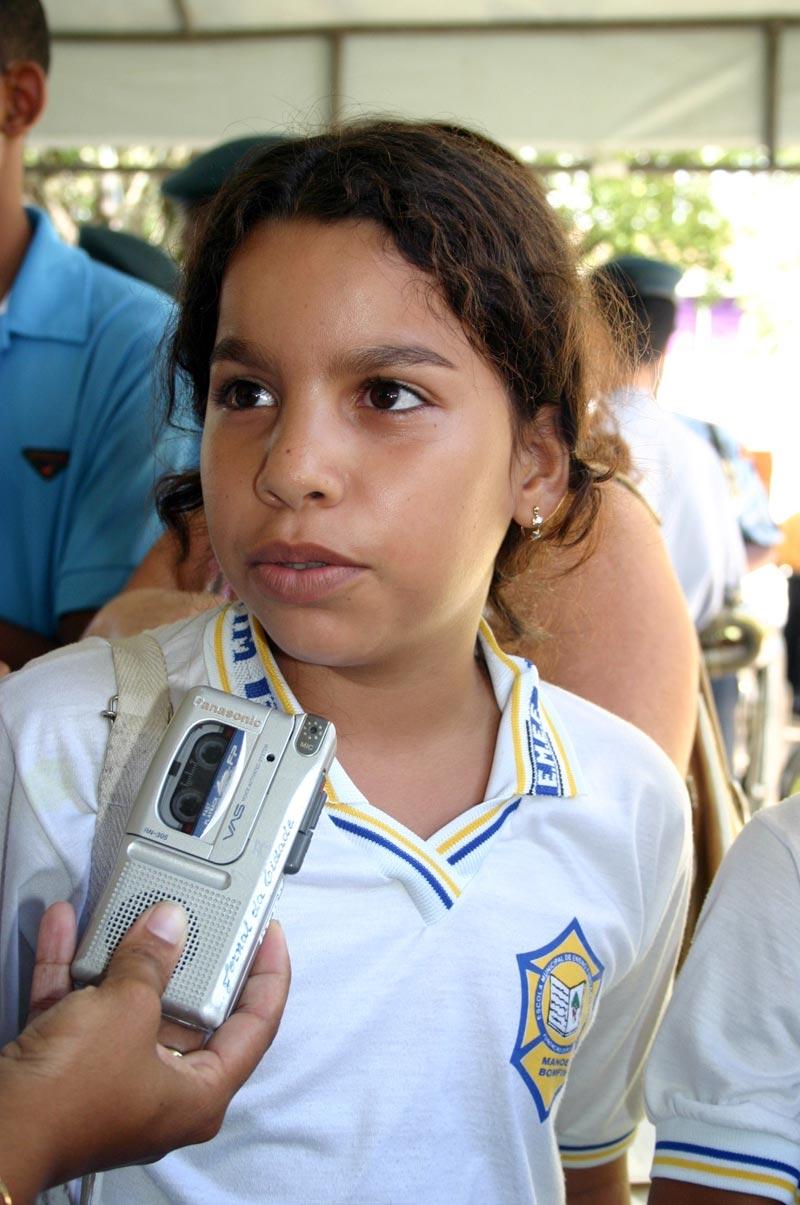 Quem também confessou nunca ter participado da solenidade do Obelisco foi Emilly Caroline Melo de Almeida, 12, estudante da 6ª B da Manoel Bomfim. Entusiasmada pela beleza do evento, disse ter adorado tudo. "É sempre bom conhecer coisas novas, pessoas novas e estar no meio delas, como aconteceu durante o Obelisco. O que o prefeito falou sobre a mudança da capital foi um dos pontos pesquisados em sala de aula", disse a garota.