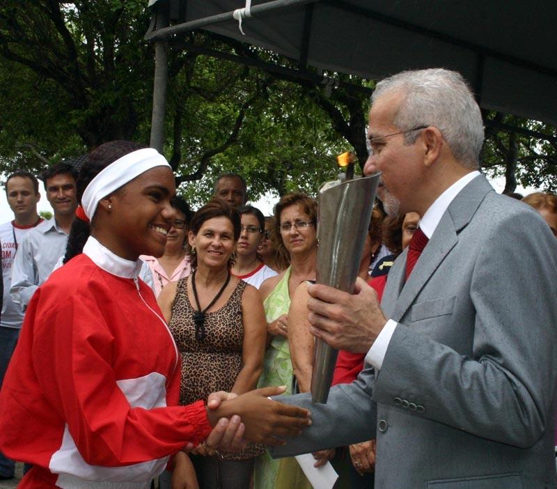 Quem também não conseguiu esconder a felicidade por ter participado da homenagem a Inácio Barbosa foi a atleta Tauane Santos Alves, 15, aluna da 7ª série da Escola Municipal de Ensino Fundamental Juscelino Kubitscheck. Na verdade Tauane não teve apenas um, mas dois motivos para esbanjar felicidade: participar da homenagem e ter sido escolhida para entregar ao prefeito Edvaldo Nogueira, a tocha que iria acender a pira.