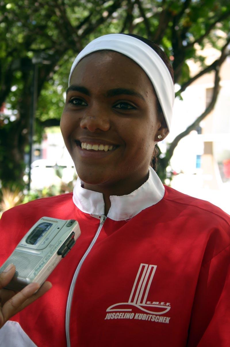 "Nossa! Estou muito feliz e confesso que antes de começar estava um pouquinho nervosa. Mas deu tudo certo, não foi?", falou a garota exibindo um largo sorriso. Tauane estuda na J.K. há oito anos e há três decidiu iniciar os treinamentos em atletismo. O gosto pela modalidade esportiva surgiu por conta do irmão, que também praticava o esporte antes de casar. "Ele acabou saindo e eu fiquei na vaga dele", informou.