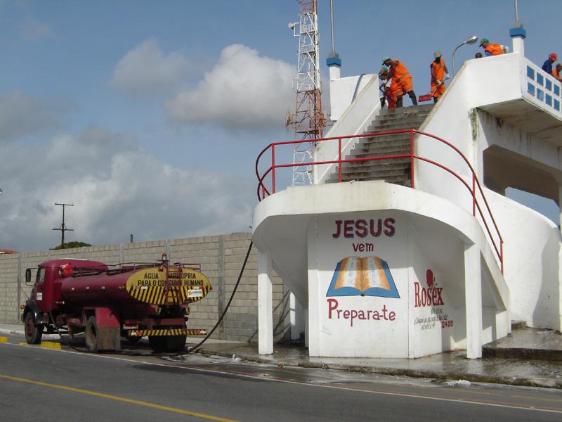 Na manhã desta quinta-feira, a Empresa Municipal de Serviços Urbanos (Emsurb) realizou um trabalho de limpeza na passarela que liga as imediações da praça dos Expedicionários e o mercado do bairro Siqueira Campos. A limpeza foi realizada pela constatação de que pessoas se utilizaram do local para banheiro público, assim como depósito de lixo. Por volta das 7h30, uma equipe da Emsurb composta por 10 agentes de limpeza recolheu o lixo depositado na base da passarela. Em seguida foi feita a varrição e o recolhimento da sujeira restante. Com um caminhão-pipa, os agentes realizaram a lavagem da parte elevada da passarela, local geralmente usado como banheiro público. O supervisor de Limpeza Urbana da Emsurb, Everaldo Santos Ferreira, adiantou que era comum algumas pessoas depositarem lixo na ponte, até mesmo pelo estado de conservação em que se encontrava a área. Com a interligação entre a avenida São Paulo e a Augusto Franco, a passarela foi recuperada, assim como foi feita a reforma do prédio da antiga estação de trem, a Leste, proprietária da passarela. “Após a obra, o ponto de lixo foi praticamente extinto e a passarela retornou a ser utilizada de forma adequada. Porém, fomos surpreendidos com a reclamação da comunidade e providenciamos esta limpeza. Estamos planejando executar esta lavagem com uma freqüência maior, embora o problema tenha origem na falta de educação de algumas pessoas”, disse o supervisor de Limpeza.