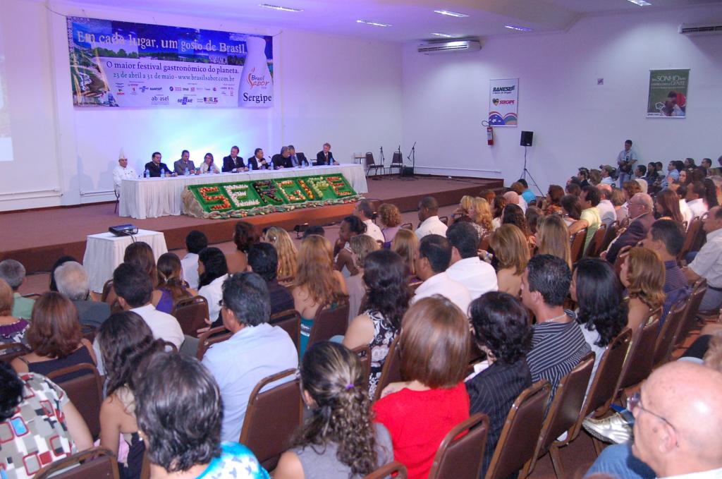 Ontem, quarta-feira, no Hotel Parque dos Coqueiros, aconteceu a solenidade de lançamento da terceira edição do festival gastronômico ´Brasil Sabor´. O evento é realizado pela Associação Brasileira de Bares e Restaurantes (Abrasel), em parceria com o Ministério do Turismo e Sebrae, e em Sergipe recebe o apoio da Prefeitura Municipal de Aracaju (PMA), por meio da Fundação Municipal de Cultura, Turismo e Esportes (Funcaju), Secretaria de Estado do Turismo e Secretaria de Estado da Cultura.