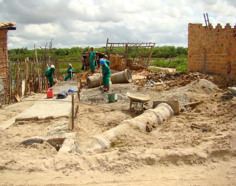 Com três equipes trabalhando simultaneamente, a Emurb iniciou a construção do muro de contenção, a implantação da rede de drenagem pluvial e as obras de terraplenagem. O muro de contenção visa impedir os prejuízos provocados pelo avanço da maré, um problema que parecia sem solução para os moradores daquela localidade, mas que agora está sendo equacionado pelo poder público municipal. A implantação da rede de drenagem é outra ação importante, pois canaliza as águas das chuvas, impedindo a formação de pontos de alagamentos. Já a terraplenagem é a primeira etapa do projeto de pavimentação das ruas. A primeira rua contemplada com as obras é a Eduardo Bomfim, importante via de acesso ao loteamento.
