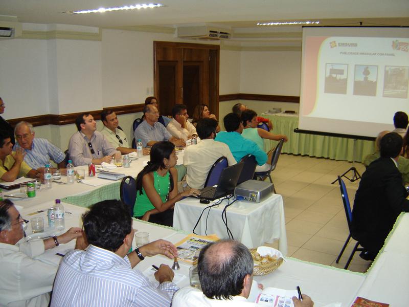 Diretoria e assessores da Empresa Municipal de Serviços Urbanos (Emsurb) participaram no início da tarde de ontem de uma reunião-almoço com empresários em mais uma edição do Fórum Empresarial de Sergipe. O evento aconteceu no Hotel Aquários, na Atalaia, para debater sobre a mudança da lei que regulamenta o uso do espaço público para publicidade. Durante a reunião, a Emsurb realizou uma explanação sobre as principais ações da empresa relativas ao ordenamento do uso do solo por parte de equipamentos de publicidade, responsabilidade técnica sobre a instalação destes equipamentos e colocação indiscriminada de faixas. Foram relatadas ainda as preocupações observadas pela Emsurb pertinentes à coibição da poluição visual na cidade e a necessidade de preservação de se estabelecer uma política de disciplinamento através da discussão com o empresariado do setor publicitário agências de propaganda e construtores de engenhos publicitários. De acordo com o diretor-presidente da Emsurb, João Andrade Vieira, a atuação do poder público municipal nesta questão mantém o ponto de vista do bem-estar da coletividade, privilegiando a preservação da estrutura urbana e paisagística da cidade. O foco principal das ações da Emsurb é sempre o de manter o bem-estar da população aracajuana, seja na retirada de faixas ou equipamentos de anúncios publicitários irregulares, assim como no combate à poluição sonora, por exemplo, onde é inegável o sucesso da integração dos órgãos públicos com o Ministério Público e a tomada de providências nos casos surgidos, explanou. Para a coordenação do Fórum Empresarial, a participação da Emsurb no debate serviu como uma demonstração de que há a intenção por parte da Prefeitura de Aracaju em discutir com representantes do setor soluções para o uso ordenado do solo urbano sem que haja agressão ao aspecto visual da cidade. Segundo o diretor de Espaços Públicos da Emsurb, Antônio Carlos Mota, o prefeito Marcelo Déda deseja fazer com que a Emsurb mantenha este canal de conversação aberto em prol da qualidade de vida dos aracajuanos. Participaram do evento, além dos diretores e de assessores da Emsurb, empresários de diversos segmentos, que compõem a Associação Empresarial do Estado de Sergipe.