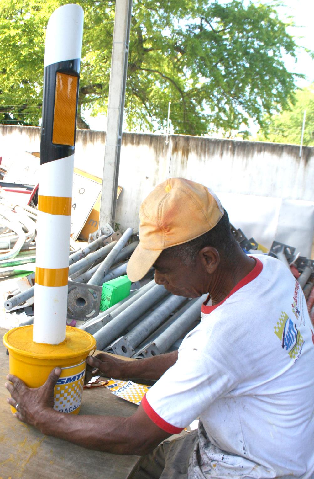 A fábrica de placas da Superintendência Municipal de Transporte e Trânsito (SMTT), continua confeccionando balizadores e sinalizadores de pista, além de placas indicativas, proibitivas e orientadoras. O objetivo é reforçar a sinalização de trânsito nos vários setores de acesso ao Forró Caju 2008, cujo tema deste ano é 'O São João da Qualidade de Vida'.