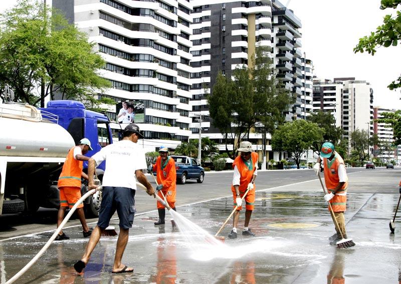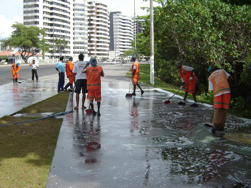 Na manhã desta quarta-feira, 25, a Empresa Municipal de Serviços Urbanos (Emsurb) realizou uma operação para lavagem do calçadão da 13 de Julho, serviço que complementa as ações de limpeza no trajeto do Pré-Caju. Segundo o diretor de Operações da Emsurb, Gilson Ramos Barbosa, após a realização da festa o piso do calçadão ficou sujo, o que necessitava de uma lavagem mais específica. Nas manhãs seguintes ao desfile dos blocos a Emsurb realizava o recolhimento do lixo e a lavagem dos pontos críticos da festa, como os locais onde foram instalados os sanitários químicos. Mas o calçadão necessitava de uma lavagem mais cuidadosa para retirar a sujeira que ficou impregnada ao piso, explicou. Gilson citou que além da lavagem dos pontos de sanitários químicos, na segunda-feira foi feita a lavagem das calçadas da outra margem da avenida Beira Mar, através de um caminhão-pipa. Nesta manhã de quarta, a Emsurb disponibilizou 10 pessoas para realizar a lavagem. Pela estimativa da equipe de limpeza, seriam utilizados cerca de 50 litros de sabão geléia e outros 50 litros de aromatizante concentrado, diluídos em 80 mil litros de água. Em outra etapa de limpeza relacionada ao Pré-Caju, uma equipe de 14 agentes de limpeza iniciou, também na manhã desta quarta, uma varredura em toda a área de mangue da 13 de Julho, desde o Iate Clube de Aracaju até as proximidades do acesso à avenida Tancredo Neves. O objetivo é o de recolher lixo atirado por pessoas durante a festa. Pela previsão da Emsurb, o serviço deve ser encerrado na sexta-feira. De acordo com as informações da Gerência de Limpeza Urbana da Emsurb, somente na próxima segunda-feira a empresa deve fazer o fechamento completo do quantitativo de lixo recolhido em função da festa. Pelos dados registrados até a terça-feira à tarde incluindo o show de abertura do Pré-Caju, na avenida Delmiro Gouveia , foram recolhidas quase 46 toneladas de lixo. Como a Emsurb ainda permanece com equipes limpando as áreas de desmonte de camarotes e barracas de bebidas, assim como iniciou hoje a limpeza do mangue, o quantitativo final deve superar as 55 toneladas.
