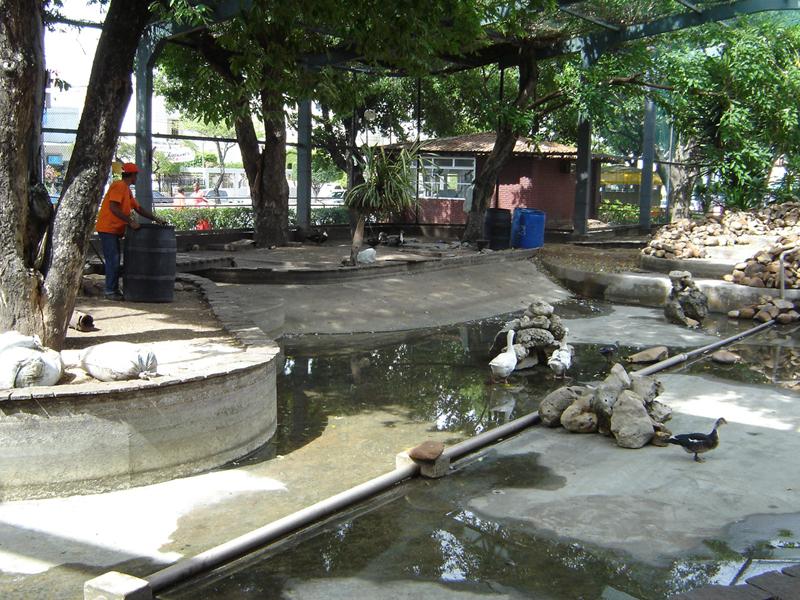 Desde o dia 23 desse mês a Gerência de Áreas Verdes da Empresa Municipal de Serviços Urbanos (Emsurb) está reestruturando o Zooparque da praça Tobias Barreto. Toda a água dos lagos artificiais foi retirada para que as rachaduras detectadas no fundo dos lagos fossem reparadas e reconstituídas. Novas estruturas, como suportes de alimentos, cobertura definitiva e balanços para as aves, estão sendo adaptadas para facilitar a vivência dos animais no viveiro. De acordo com o gerente de Áreas Verdes, Francisco Ney Maia, os lagos artificiais foram esvaziados para que fosse analisada a causa da variação da cor da água, assim como o aparecimento constante de resíduos no fundo do lago. “O aparecimento de sujeira constante e a mudança da cor da água nos levou a buscar a causa dessa variação e acabamos detectando rachaduras no fundo dos lagos artificiais. Toda a água foi retirada, para a reestrutura e limpeza dos lagos do Zooparque”, relata. Manter o bem-estar das aves, peixes, jabutis e árvores presentes no viveiro é o maior objetivo da manutenção que a Emsurb realiza trimestralmente no Zooparque da praça Tobias Barreto. Segundo o veterinário da Emsurb, Pedro da Silva, o bem-estar do animal vai desde a alimentação balanceada, limpeza do ambiente em que vive e a forma como são tratados. “Um conjunto de fatores influencia para o bem-estar e saúde desses seres; não se trata somente de um lugar adequado, mas de uma alimentação correta, condições ambientais coerentes para cada tipo de espécie e limpeza assídua do ambiente. A Emsurb vem desempenhando esse papel se preocupando sempre com as boas condições de vida destes animais. O lago estava acumulando limo e a coloração da água estava esverdeada. Para solucionar o problema, toda a água foi removida, as rachaduras foram reparadas, tudo para manter o bem-estar das aves e peixes”, diz. O gerente Francisco Ney Maia lembra que foram estudadas maneiras juntamente com o veterinário Pedro da Silva para facilitar as condições de sobrevivência das aves. “Nós nos empenhamos e estudamos o que facilitaria a vida destes seres vivos aqui no viveiro. Reparamos que as araras permanecem a maior parte do tempo penduradas nas telas, para isso estamos adaptando balanços em toda a área. Tínhamos coberturas temporárias feitas com lonas, agora temos uma cobertura permanente de telha. Reparamos também que os comedores ao chão eram um incômodo para as aves e desperdiçava alimento, para solucionar estamos fazendo uma adaptação de suportes para que o alimento esteja no alto e beneficie as aves e evite o desperdício”, explica.