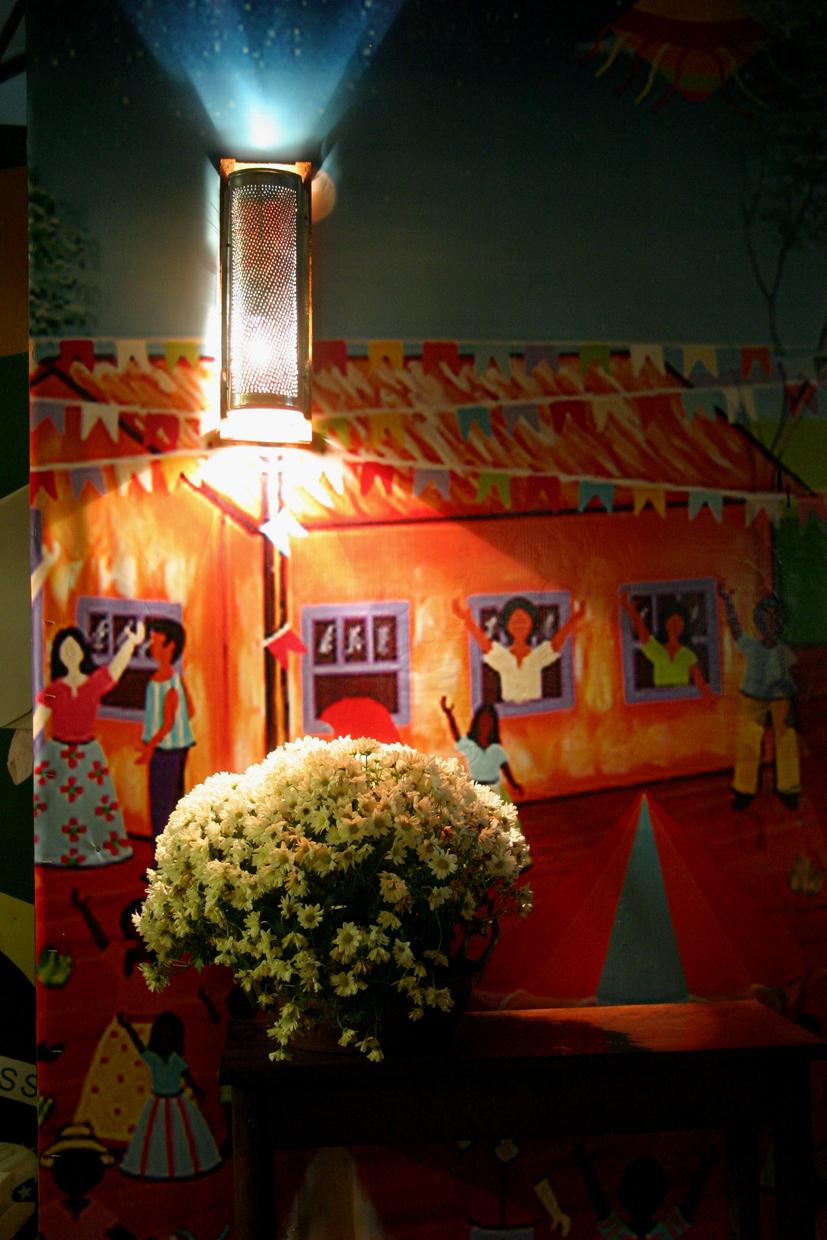 Quem também investiu na decoração foi o proprietário do Bar do Candeeiro, Enoque Araújo. Na entrada já se percebe um enorme candeeiro. "A inspiração para deixar o local mais bonito foi o rústico sertão nordestino, o que há de mais tradicional nos festejos juninos", justificou. Lá, as mesas estão forradas com tecidos estampados com desenhos de grandes flores coloridas. Ainda podem ser encontrados bandeirolas, balões e peneiras que ganharam fisionomias. O espaço possui 23 mesas e graças à festa quase 10 empregos temporários foram gerados.