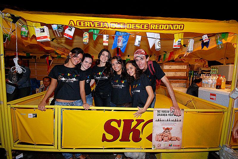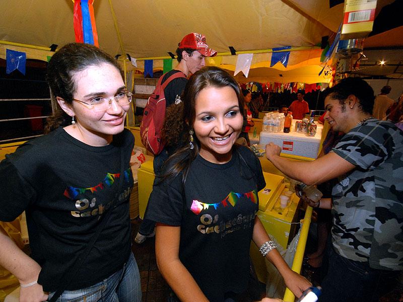 Latas de refrigerante e caixas de remédios viraram decoração da barraca ‘Os Cachacêuticos', da turma de formandos 2009.2 do curso de Farmácia da Universidade Federal de Sergipe (UFS). O espaço conta com globo de luz e música eletrônica, animando a galera enquanto as bandas se revezam no palco Luiz Gonzaga.