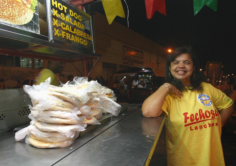 A proprietária da ‘Fechosa Lanches' demonstra animação em relação às suas vendas. "Para mim tudo está ótimo. Muitos fregueses gostam da comida que vendo, porque tem qualidade", declara. O cardápio varia entre sanduíche e bebidas. "O x-frango é o mais vendido. Aqui não tem tempo ruim", comemora.