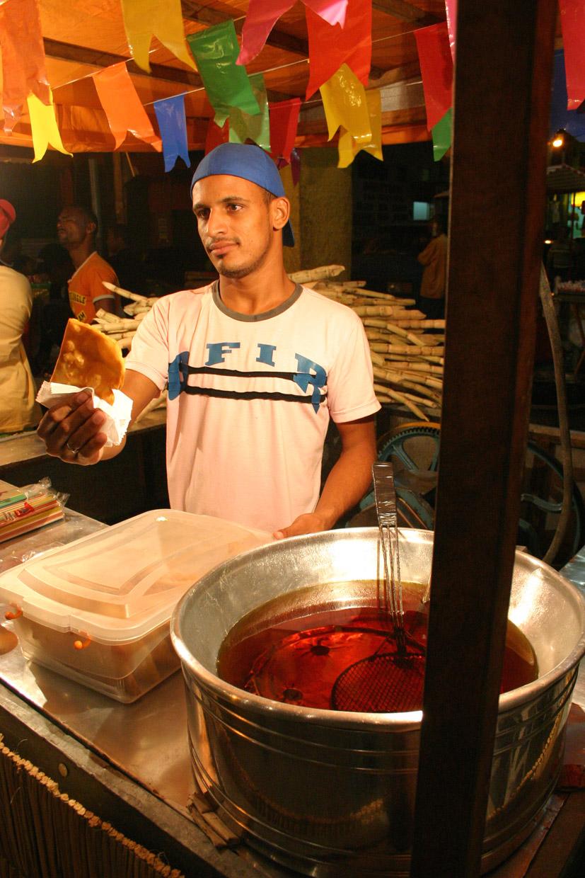 Outra opção para se alimentar é a famosa combinação caldo de cana e pastel. O vendedor Josuel dos Santos informa que na abertura do Forró Caju chegou a vender 500 pastéis. "Espero que até o fim eu possa vender ainda mais", conta.