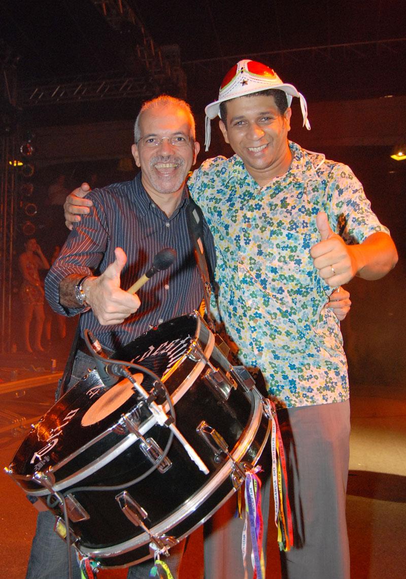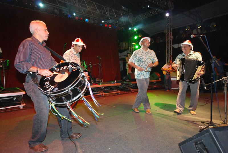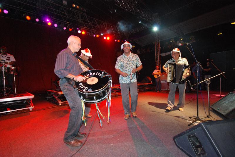 O prefeito Edvaldo Nogueira não resistiu ao ritmo contagiante do Trio Nordestino e acabou aceitando o convite para tocar zabumba durante o show do grupo nesta sexta-feira, no palco principal do Forró Caju. Coroneto, o ‘zabumbeiro oficial' do trio, passou o instrumento para as mãos do prefeito, que, mais uma vez, fez bonito e recebeu elogios.