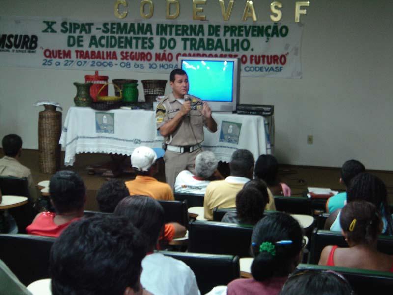A palestra Prevenção de acidentes para pedestres e motoristas marcou, na manhã de hoje, 27, o último dia da X Semana Interna de Prevenção de acidente de trabalho (Sipat), realizada pela Empresa Municipal de Serviços Urbanos (Emsurb) no auditório da Codevasf. O supervisor de Operações e Fiscalizações da Superintendência Municipal de Transportes e Trânsito, Luiz Laerte Lopes, falou aos presentes sobre a importância da preocupação com a segurança ao executar serviços nas ruas da cidade e repassou orientações que devem ser seguidas pelos servidores que executam serviços em avenidas de grande fluxo da capital. Para Luiz Laerte, essa preocupação de prevenção para acidentes fora da empresa, chamando a atenção para o trânsito, reflete também a preocupação para com o bem-estar total do funcionário. "Se todas as empresas tivessem essa percepção, nosso serviço de conscientização seria bem mais eficiente. Eu tive a oportunidade hoje de conscientizar aproximadamente 120 cidadãos. Se pelo menos 15 deles levarem essa mensagem adiante, teremos multiplicadores que conscientizarão outros cidadãos e que serão outros multiplicadores, ressalta. Segundo a vice-presidente da Comissão Interna de Prevenção de Acidentes (Cipa) da Emsurb, Ilma Maria Lima, a X Sipat trouxe diversos esclarecimentos para os empregados da empresa, fazendo com que utilizem em seu cotidiano as orientações repassadas durante o evento. As palestras foram bastante esclarecedoras, alertaram sobre cuidados que devemos ter para nos prevenir de acidentes de trânsito. São coisas básicas, como por exemplo atravessar a rua, mas que esquecemos de regras básicas de segurança por fazer isso constantemente, explica.